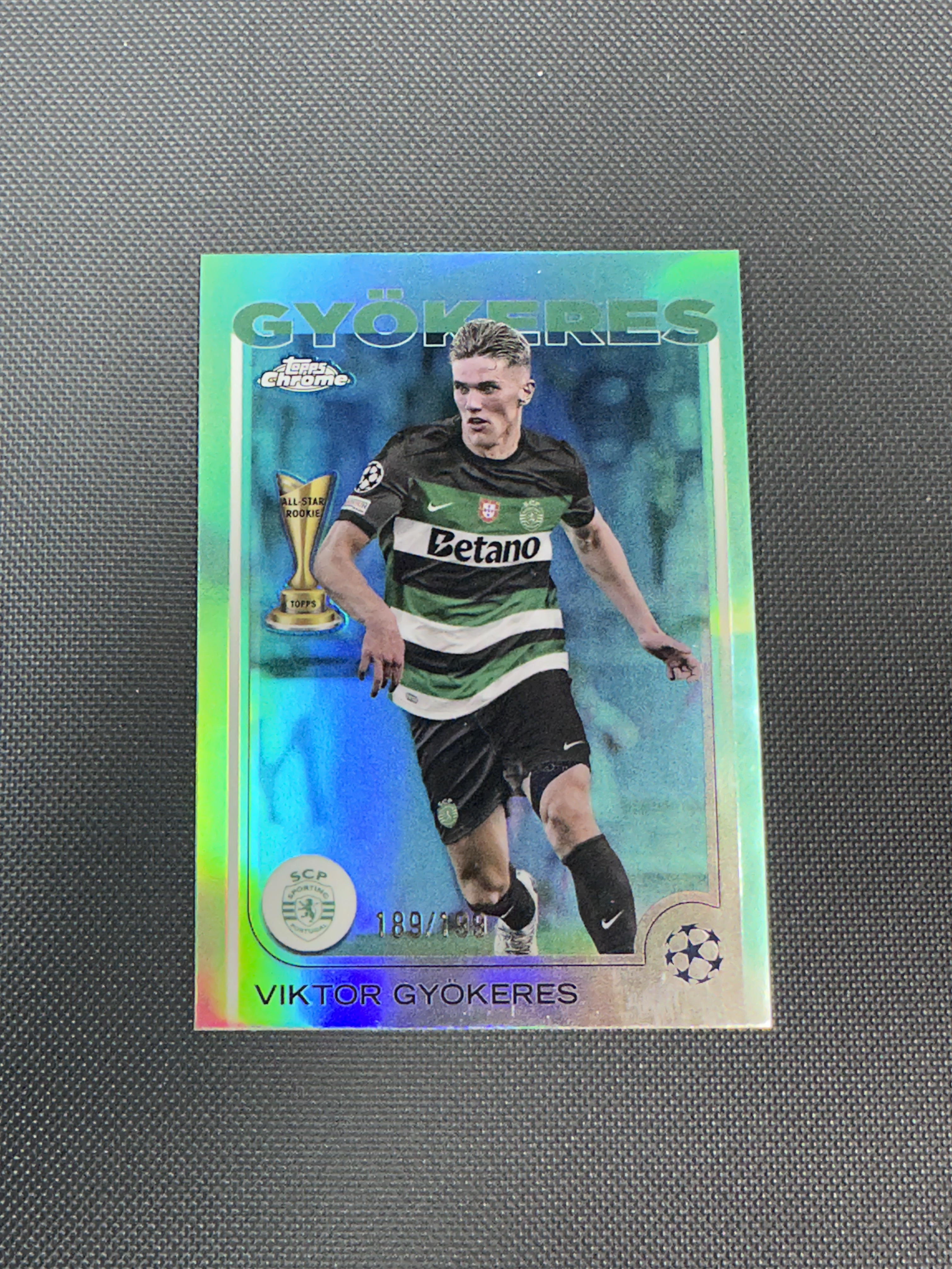2024-25 Topps Chrome Viktor Gyokeres RC cu代卖cm 欧战Tc 新秀 维克托 约克雷斯 哲凯赖什 瑞典 青折 水蓝折 葡萄牙体育 199编 折射 细节如图三四