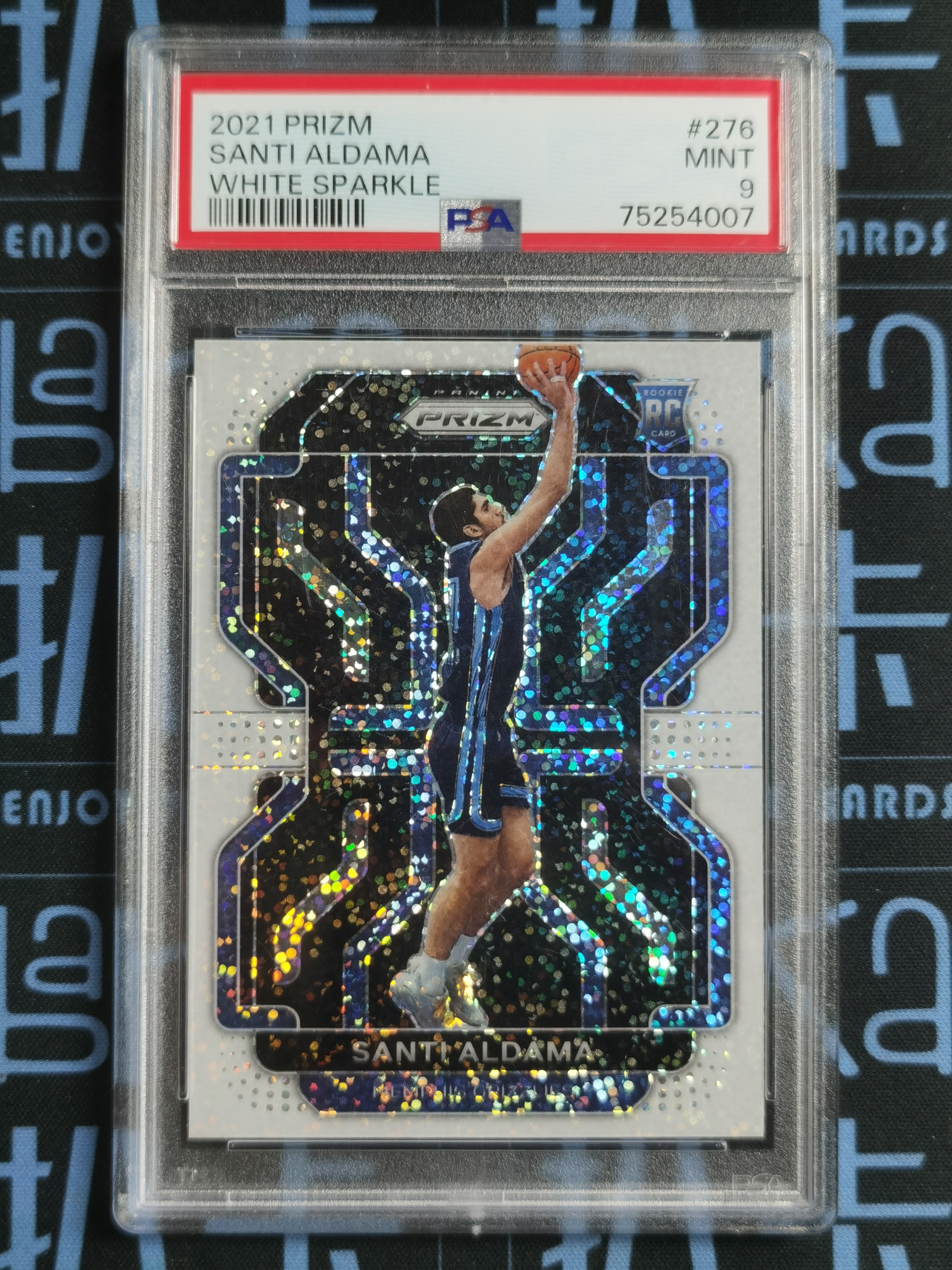 【扒卡拍卖】2021-22 Panini Prizm Santi Aldama 马赛克 灰熊 阿尔达马 二大妈 新秀RC 白碎闪折 折射 PSA9分 烨0601BK11