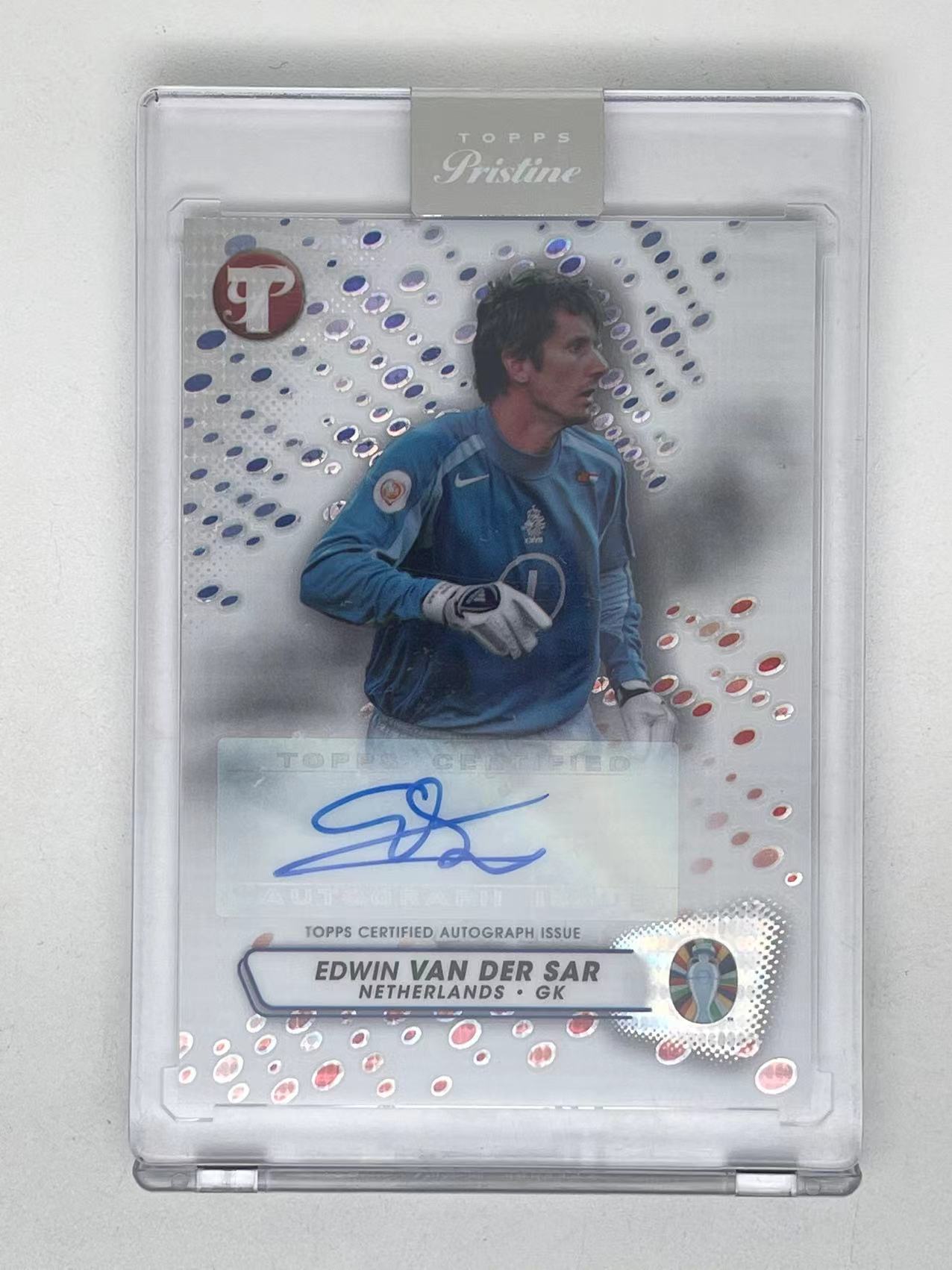 【宁动拍卖】2023 Topps Pristine Edwin van der Sar 太古 欧洲杯之路 荷兰 曼联 埃德温 范德萨 红蓝折 44/99编 签名 签字 原封砖 #峰