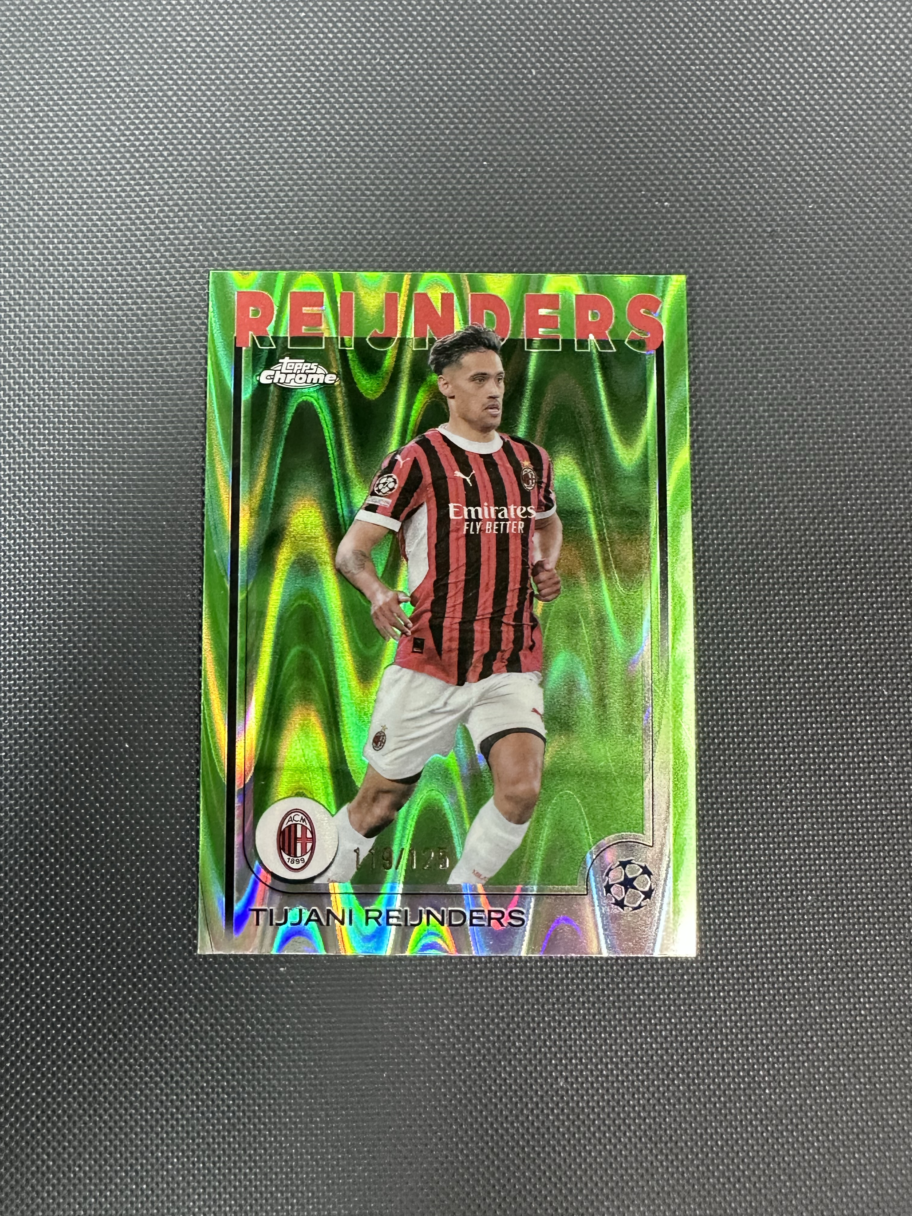 2024-25 Topps Chrome Tijjani Reijnders cu代卖cm 欧战 Tc AC米兰 泰贾尼 赖因德斯 荷兰 霓虹绿波纹折 119/125编 折射 卡品细节如图三四