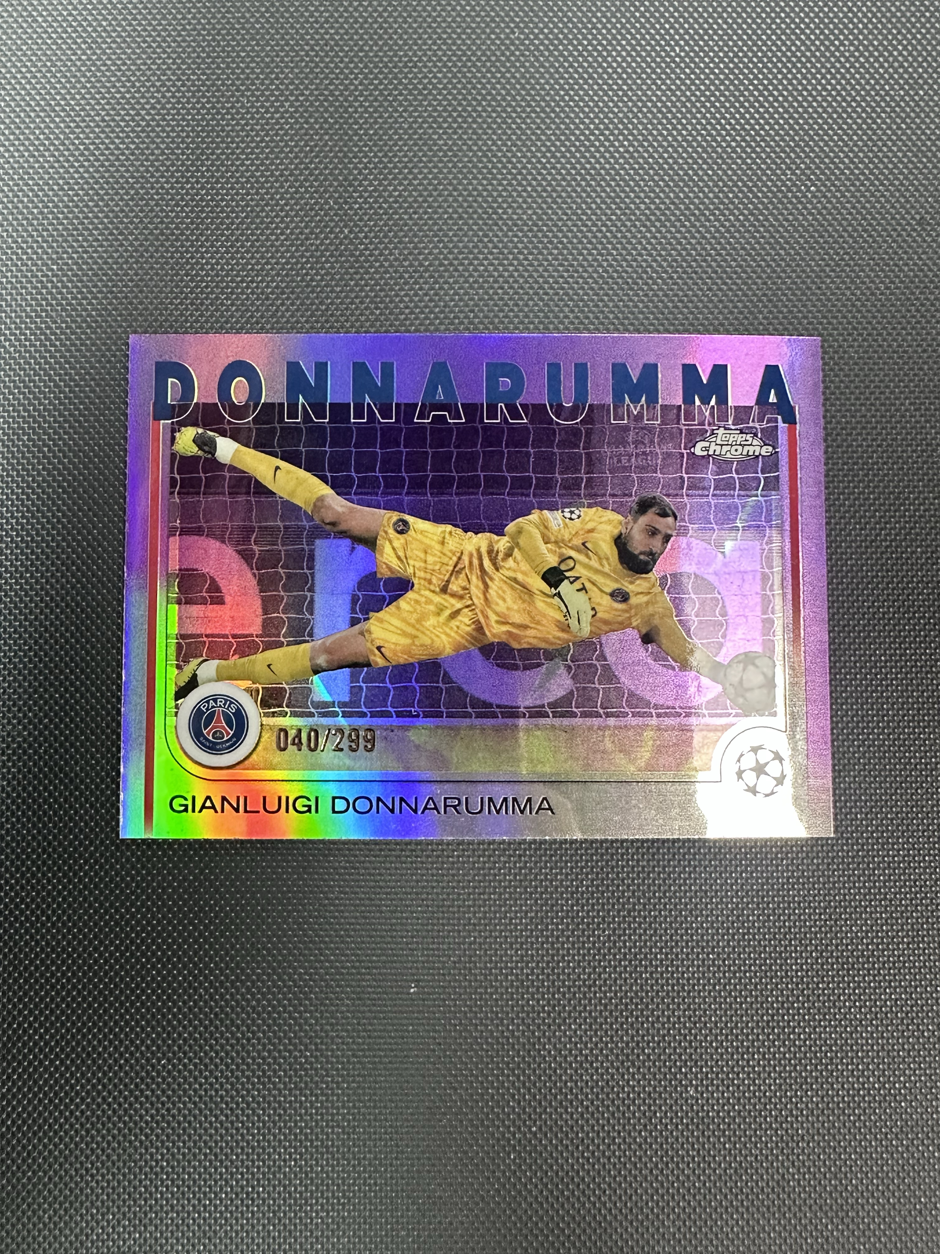 2024-25 Topps Chrome Gianluigi Donnarumma cu代卖cm 欧战Tc 多纳鲁马 唐纳鲁马 巴黎圣日耳曼 40/299编 紫罗兰折 意大利 AC米兰 折射 卡品如图