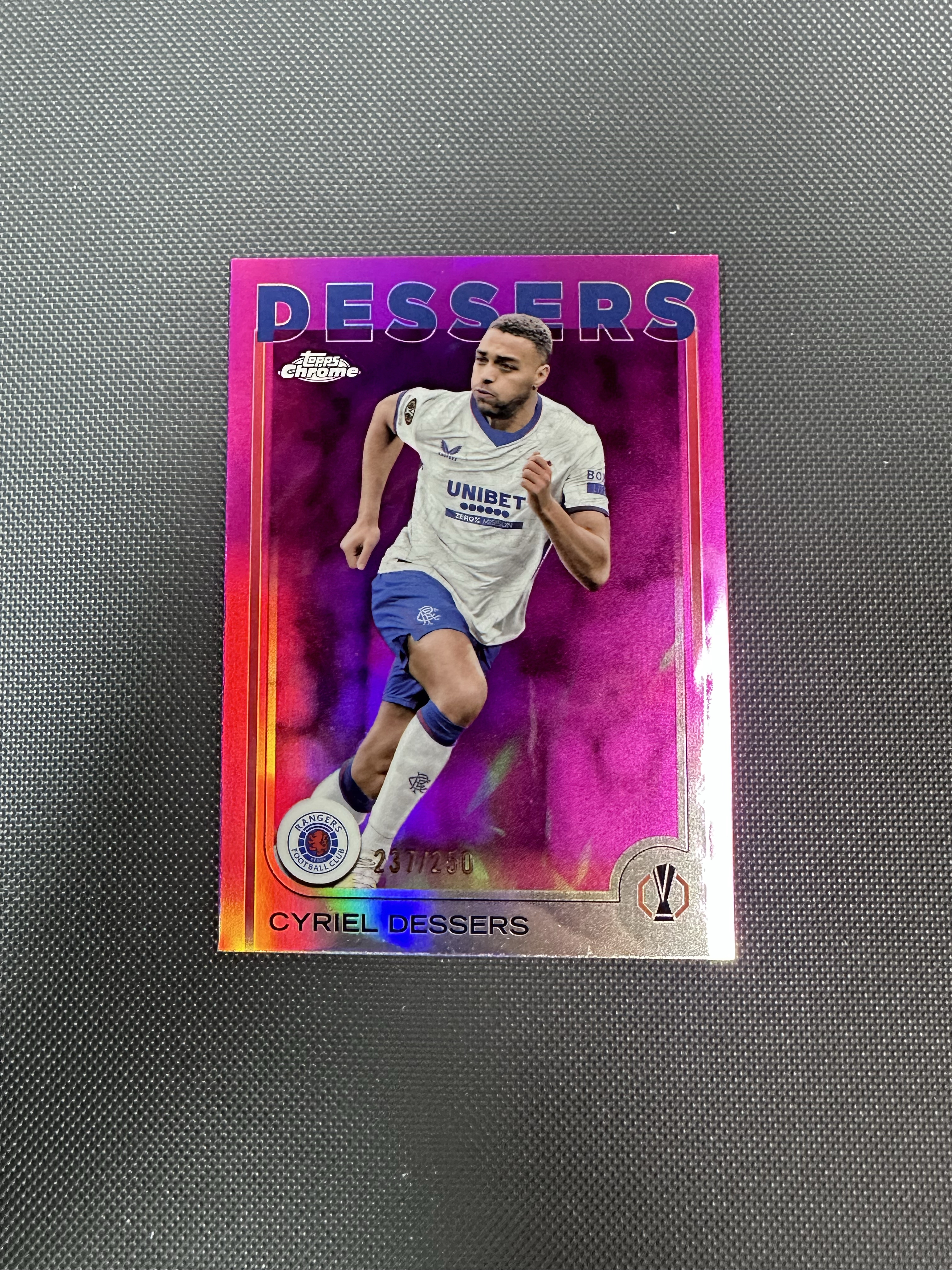 2024-25 Topps Chrome Cyriel Dessers cu代卖cm 欧战 Tc 西里尔 德瑟斯 格拉斯哥流浪者 尼日利亚 237/250编 粉折 折射 卡品如图