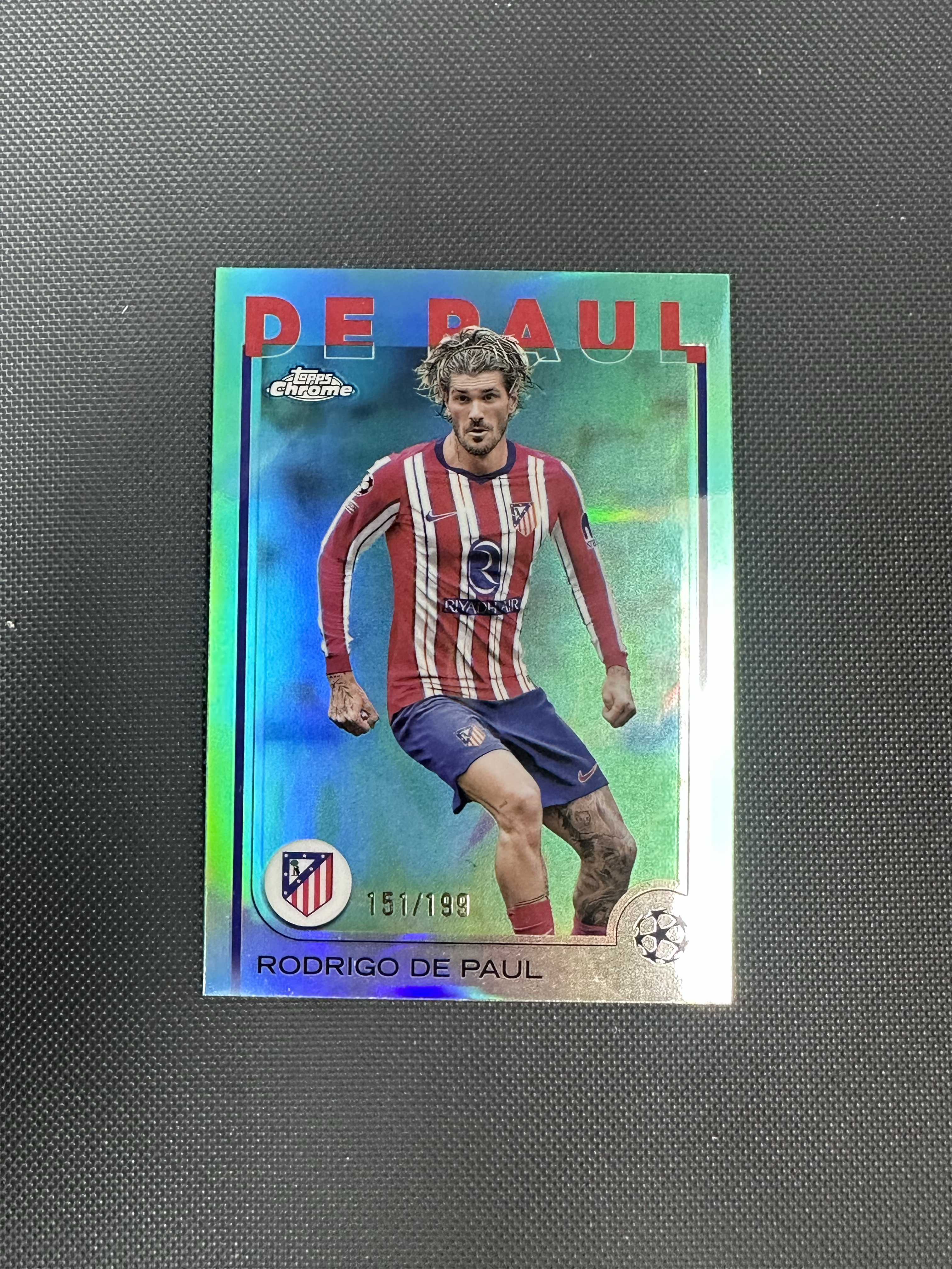 2024-25 Topps Chrome Rodrigo De Paul cu代卖cm 欧战 tc 德保罗 马德里竞技 阿根廷 水蓝折 青折 151/199编 折射 球王梅西队友 卡面微痕如图三