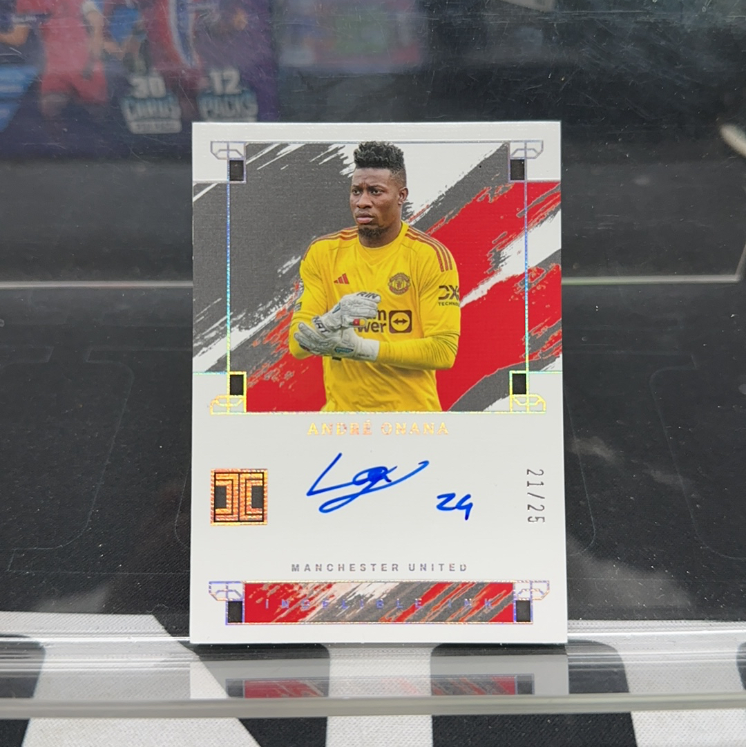 2023-24 Panini Impeccable André Onana 【大熊拍卖】英超 小真金 曼联 奥纳纳 ink签字 卡签 银平行 21/25编 微瑕如图 熊