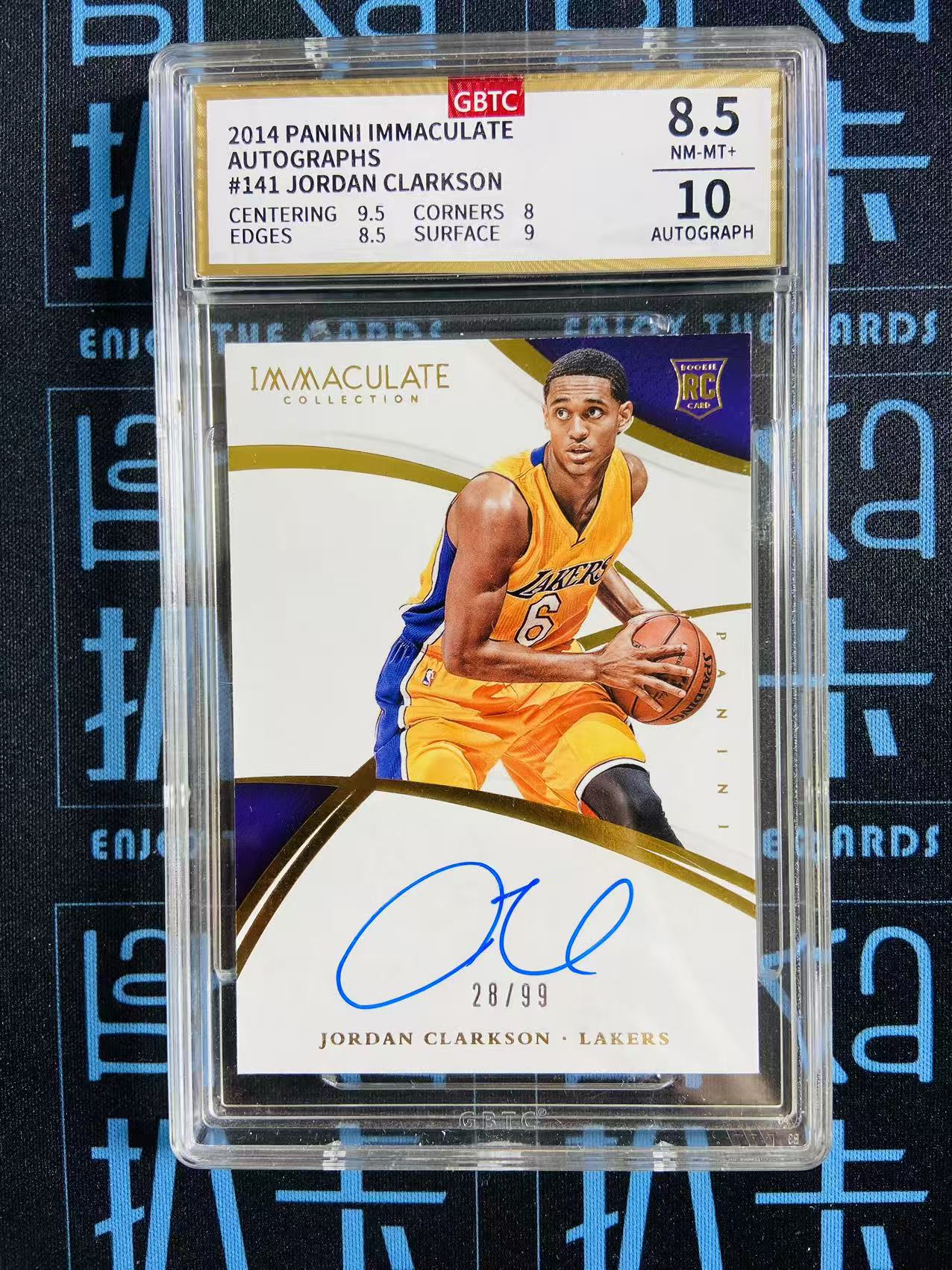 【急出卡 找扒卡】2014-15 Panini Immaculate Jordan Clarkson imm 乔丹 克拉克森 湖人 新秀RC 签字 卡签 /99编 RA 板签 菲律宾乔丹 GBTC8.5+10 评级卡 三角洲0601BK02