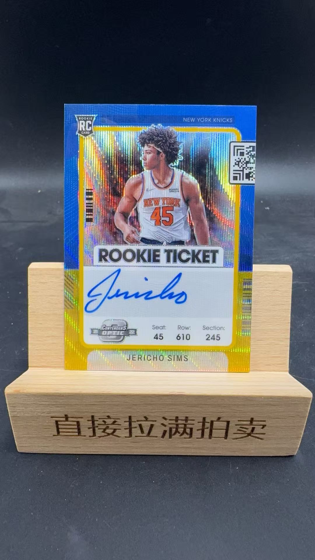 2022 Panini Contenders Optic Jericho Sims RC 球票 OP 尼克斯 杰里科 西姆斯 新秀 折射 金波纹 8/10编 签字 拉满代拍达不牛