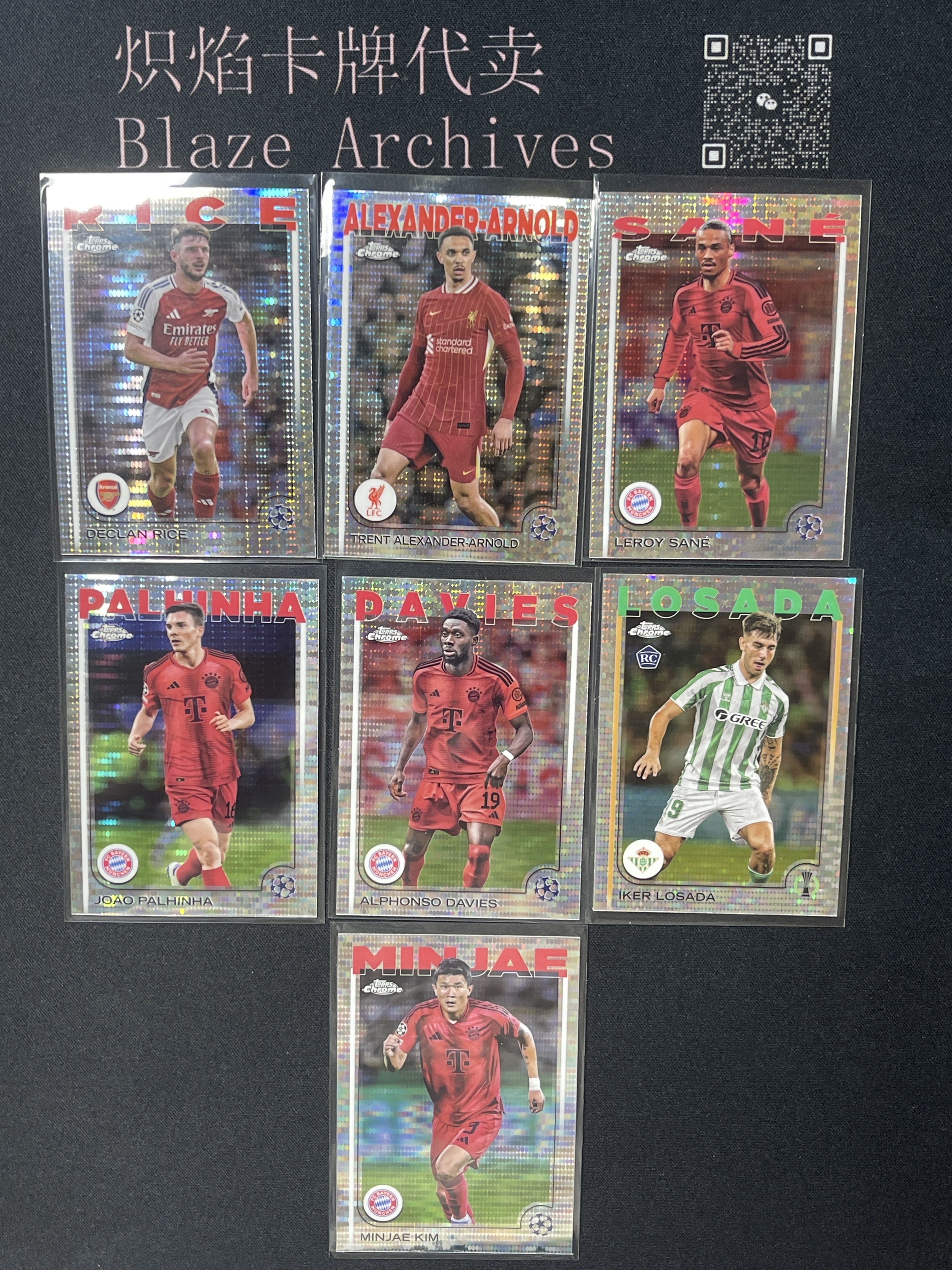 2025 Topps Chrome Raul Asencio RC TC欧冠 脉冲折 碎点折 阿森纳 利物浦 拜仁 阿方索 戴维斯 萨内 赖斯 洛萨达 金玟哉 等 7张打包 #nino