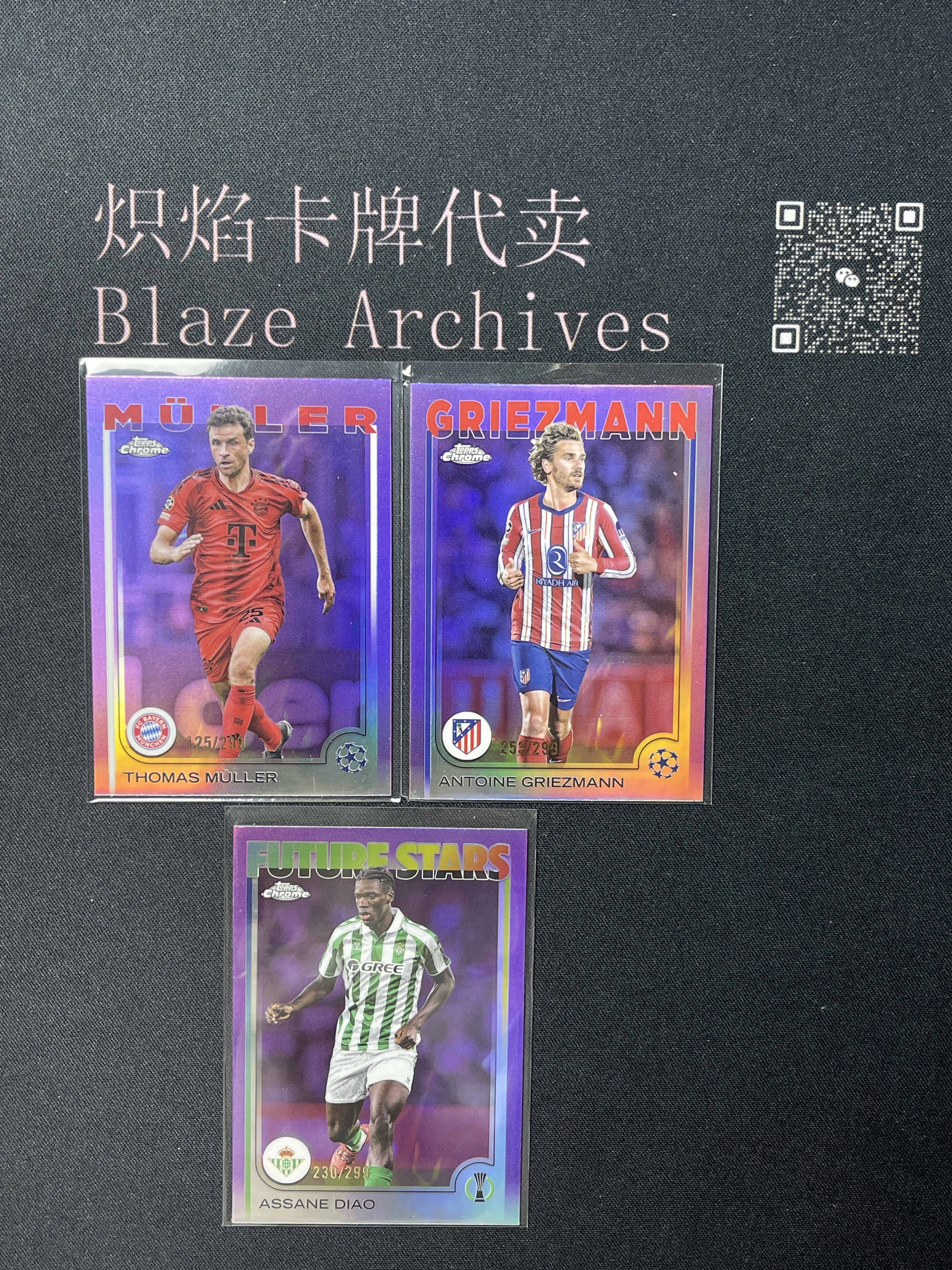2025 Topps Chrome Thomas Müller TC欧冠 托马斯 穆勒 迪亚奥 格列兹曼 299编 紫折 好人 3张打包 收藏凑套必备 #nino