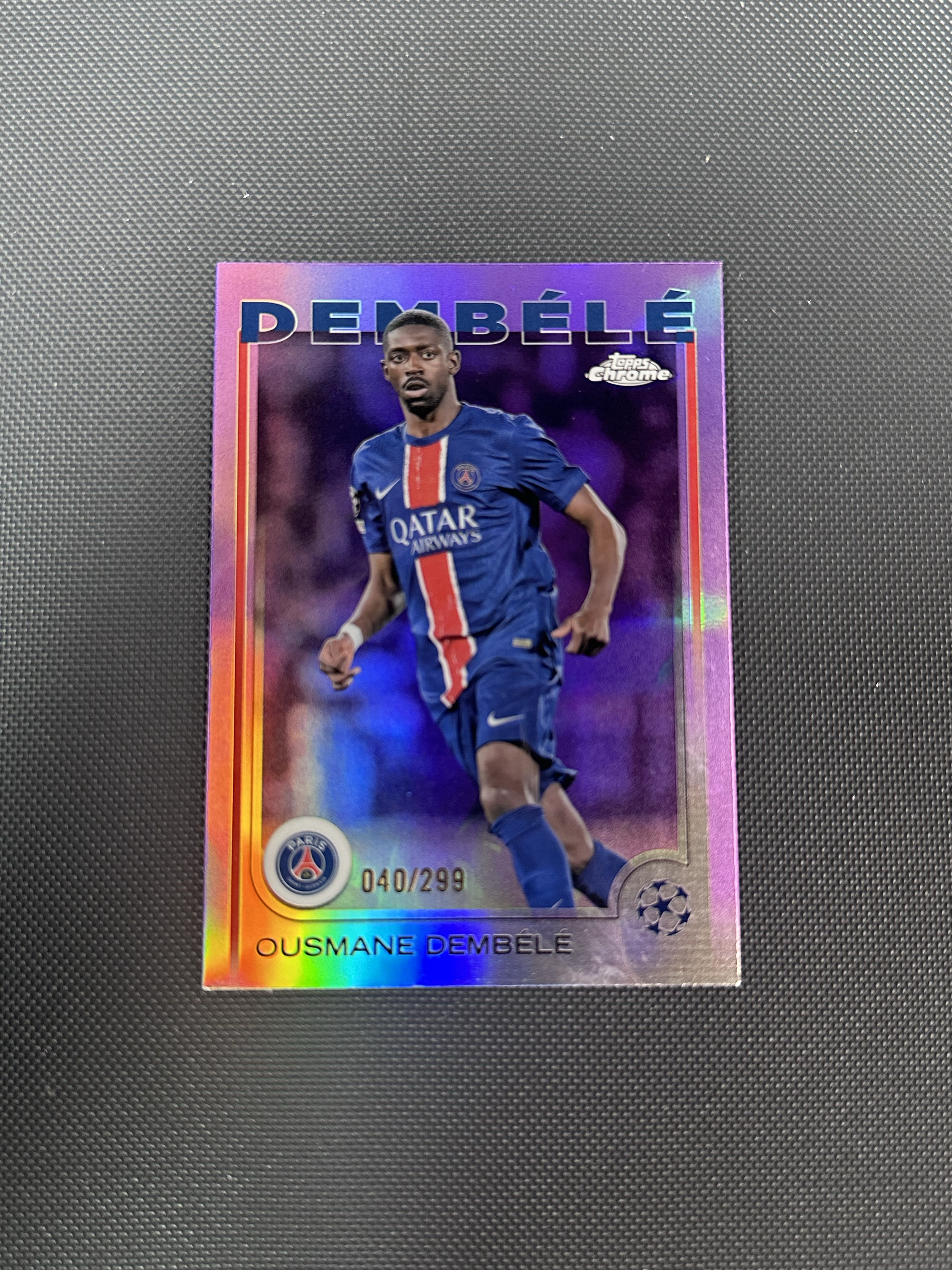 2024-25 Topps Chrome Ousmane Dembélé cu代卖毅进 欧战Tc 奥斯曼 乌斯曼 登贝莱 巴黎圣日耳曼 法国 紫罗兰折 40/299编 折射 多特蒙德 卡面细节如图三四