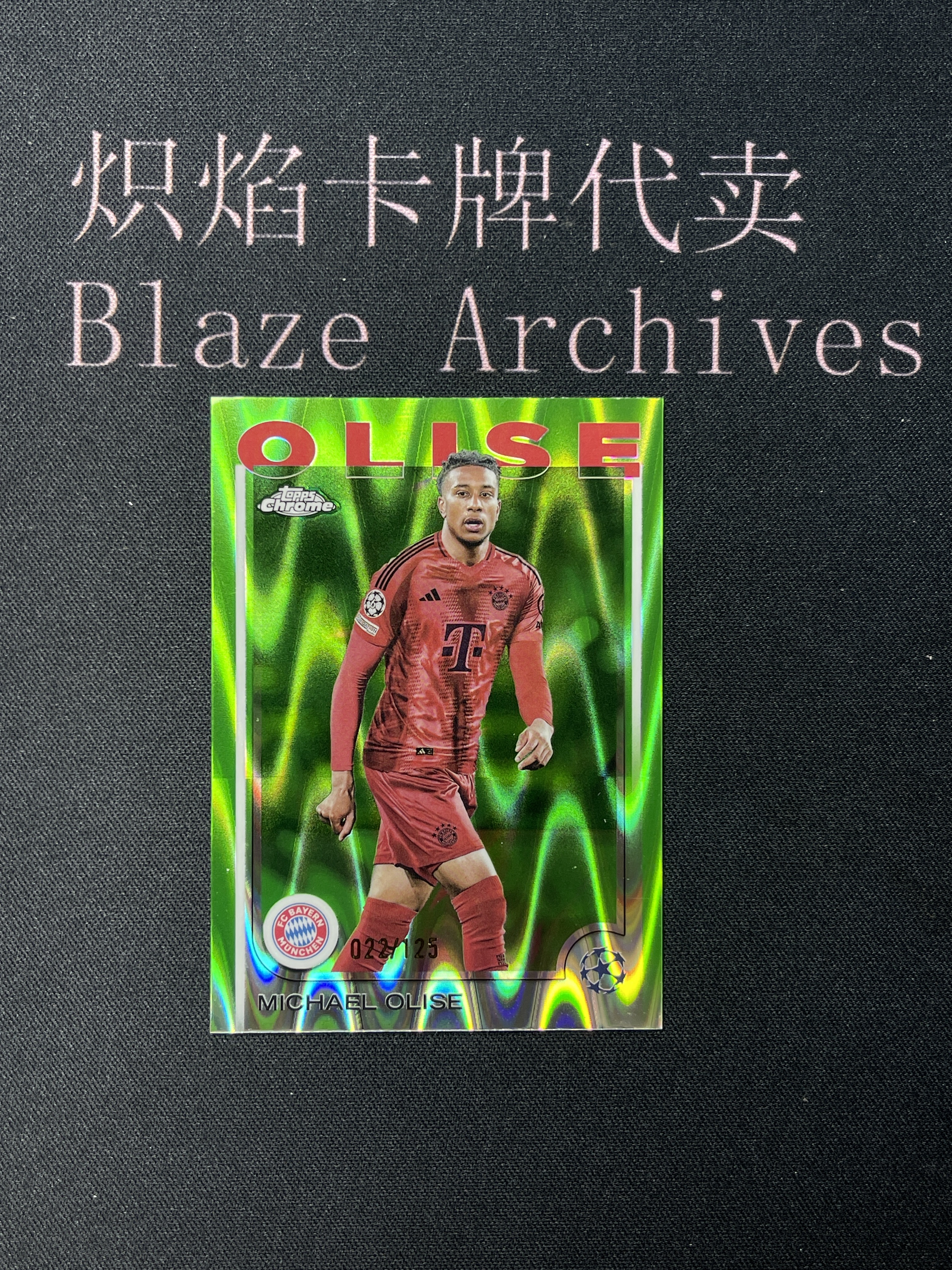 2025 Topps Chrome Michael Olise TC欧冠 拜仁慕尼黑 迈克尔 奥利塞 022/125编 绿波纹折 收藏必备 卡品见图#nino