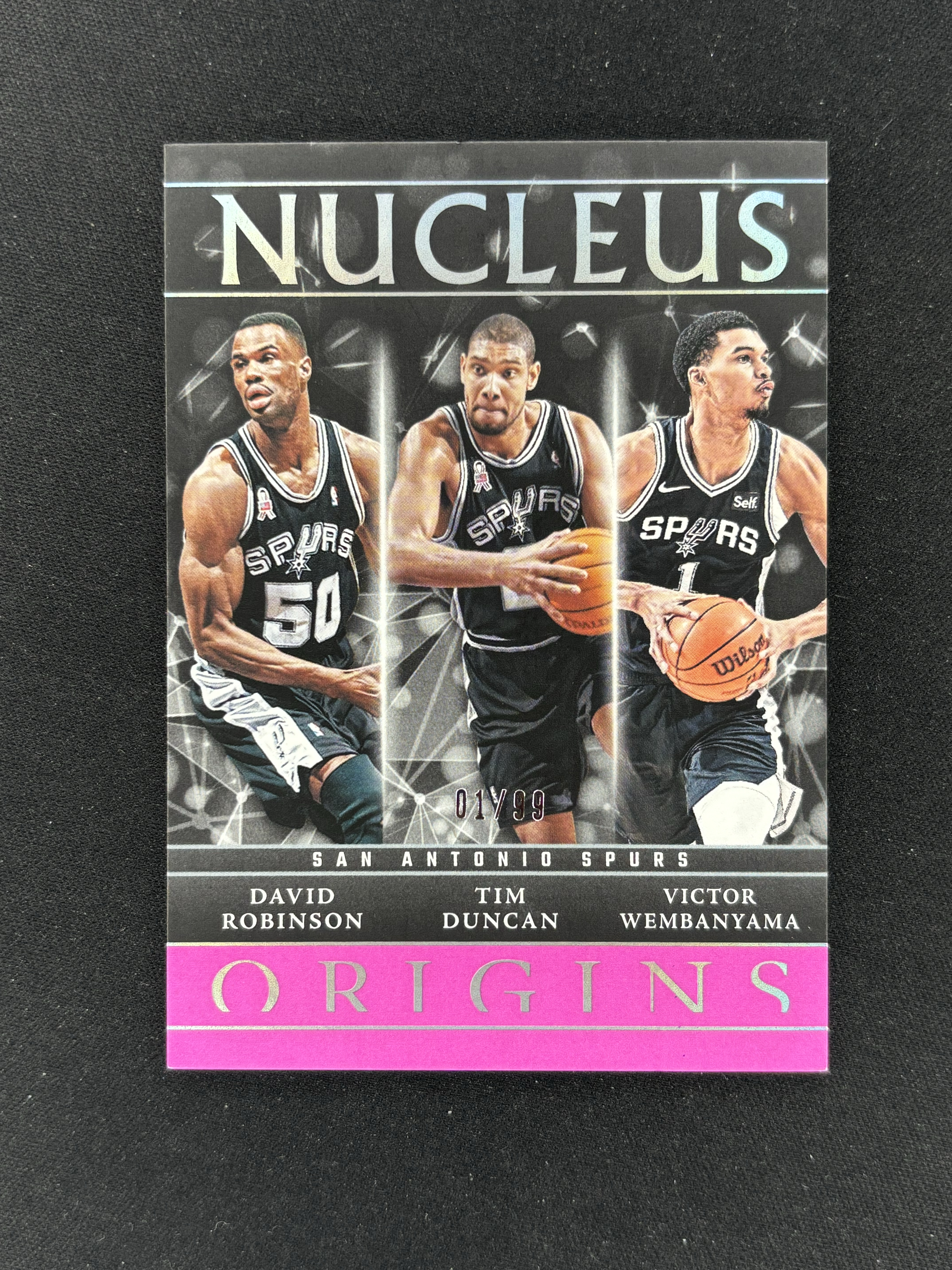 2024-25 【杰瑞拍卖】 Origins Victor Wembanyama 起源 文班亚马 邓肯 大卫罗宾逊 Nucleus特卡 01/99编 首编 三人组合 边角轻微磨损(沃德发龙哥527)