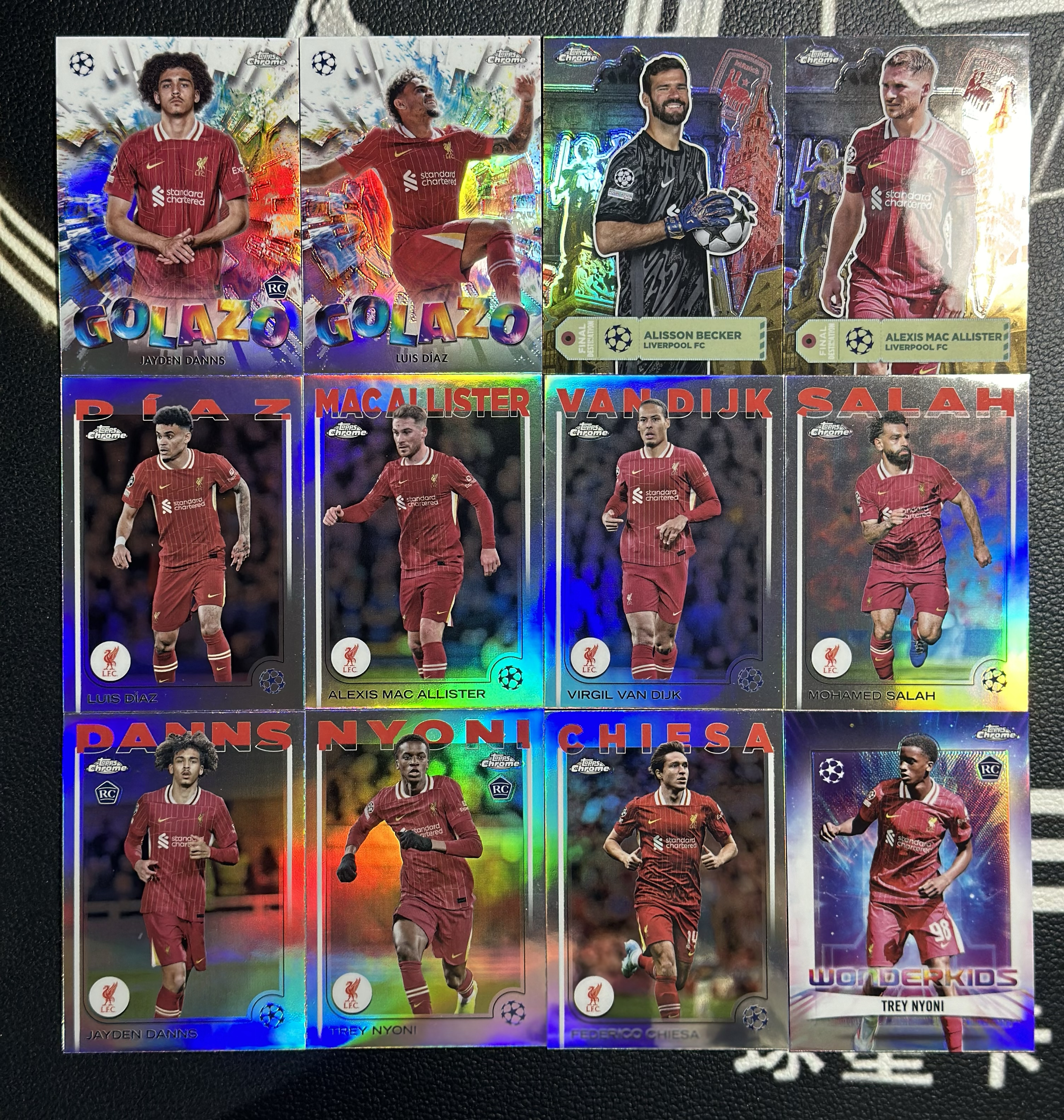 2024-25 Topps Chrome Mohamed Salah 最新欧冠TC 利物浦银折特卡大队套!萨拉赫 麦卡利斯特 迪亚斯 杰登丹斯 范戴克 尼奥尼 基耶萨 12张打包 凑套不易卡品如图