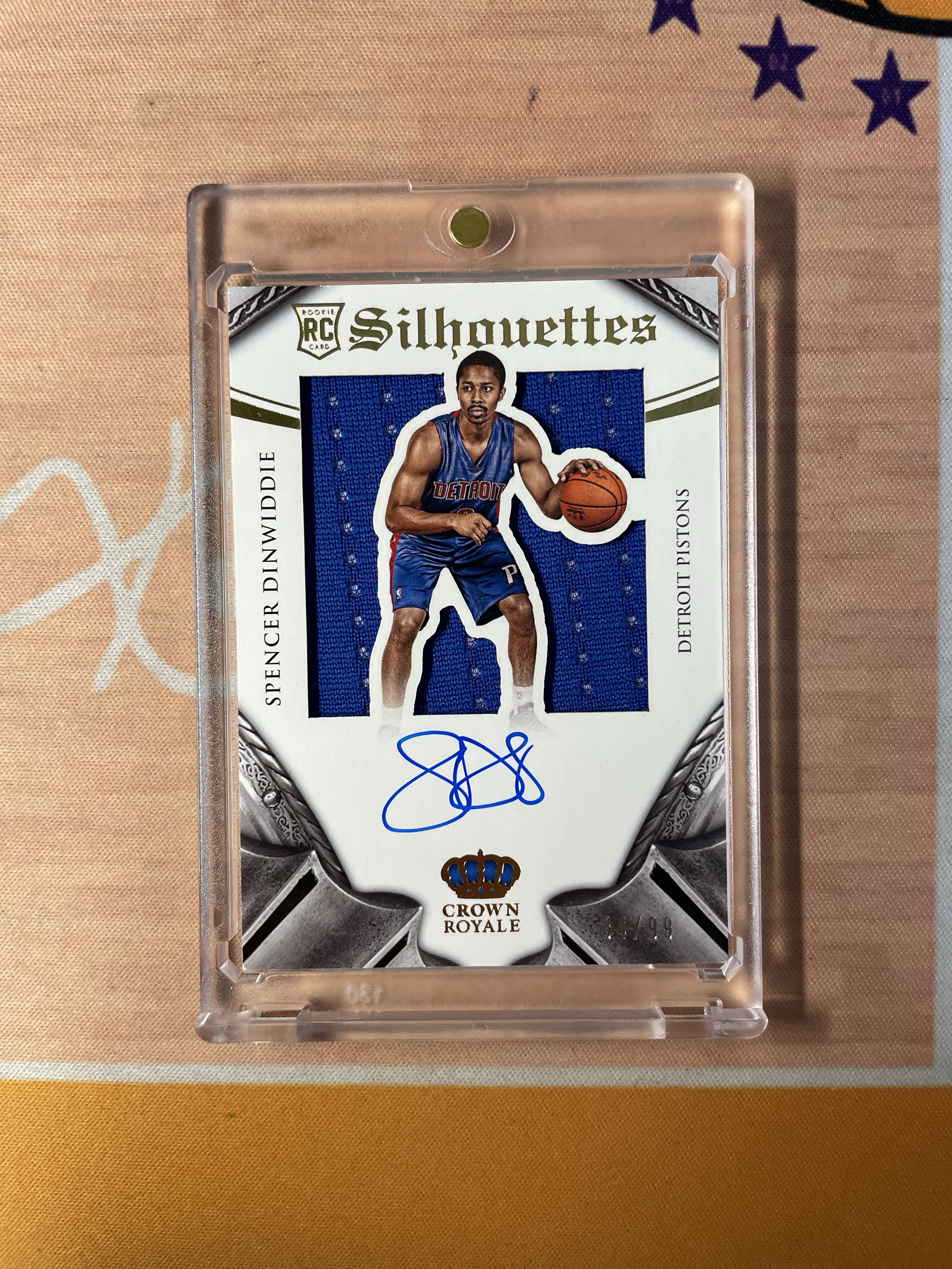 2014-15 Panini Crown Royale Spencer Dinwiddie 活塞 丁威迪 皇冠 剪影 卡签 签字 大窗 球衣 物料 99编 新秀rc 丁维迪