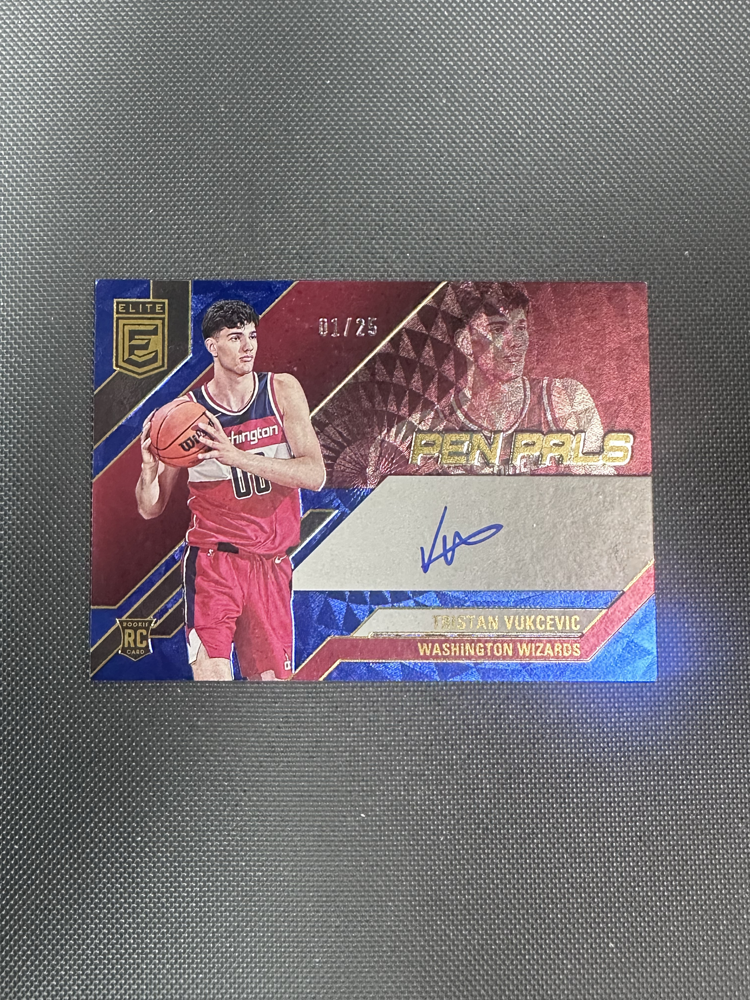 2023-24 Panini Donruss Tristan Vukčević RC cu代卖cm 杜蕾斯 精英 新秀 武克切维奇 奇才 Pen Pals 卡签 签字 01/25编 低编 卡角细节如图