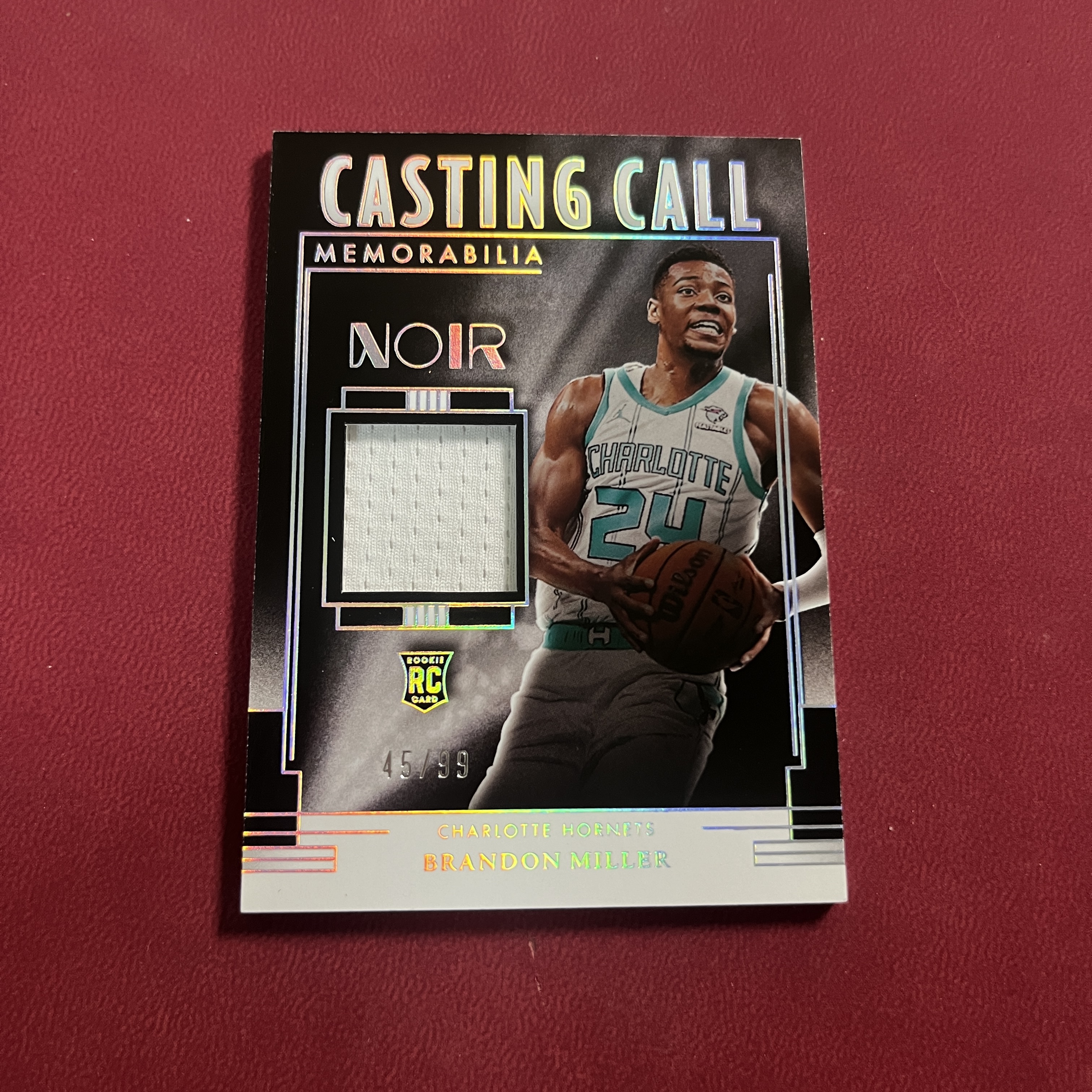 2023-24 Panini Noir Brandon Miller RC Noir 黄蜂 新秀 布兰登 米勒 物料 球衣 /99编 瑕疵如图