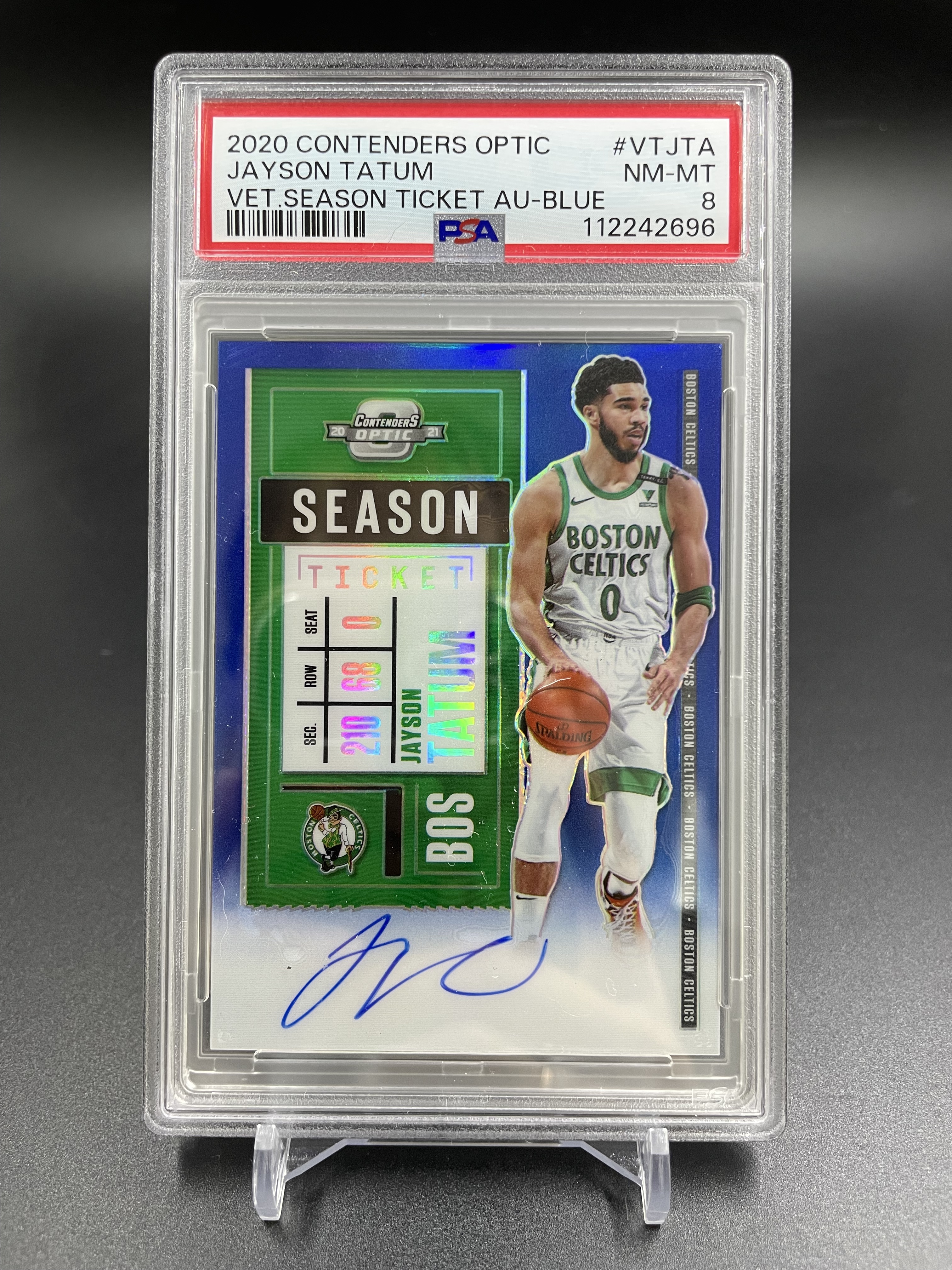 2020-21 Panini Contenders Jayson Tatum 11【超级拍卖】球票 OP 杰森 塔图姆 凯尔特人 折射 蓝折 签字 卡签 17/20编 PSA8 评级卡 签字卡壳如图