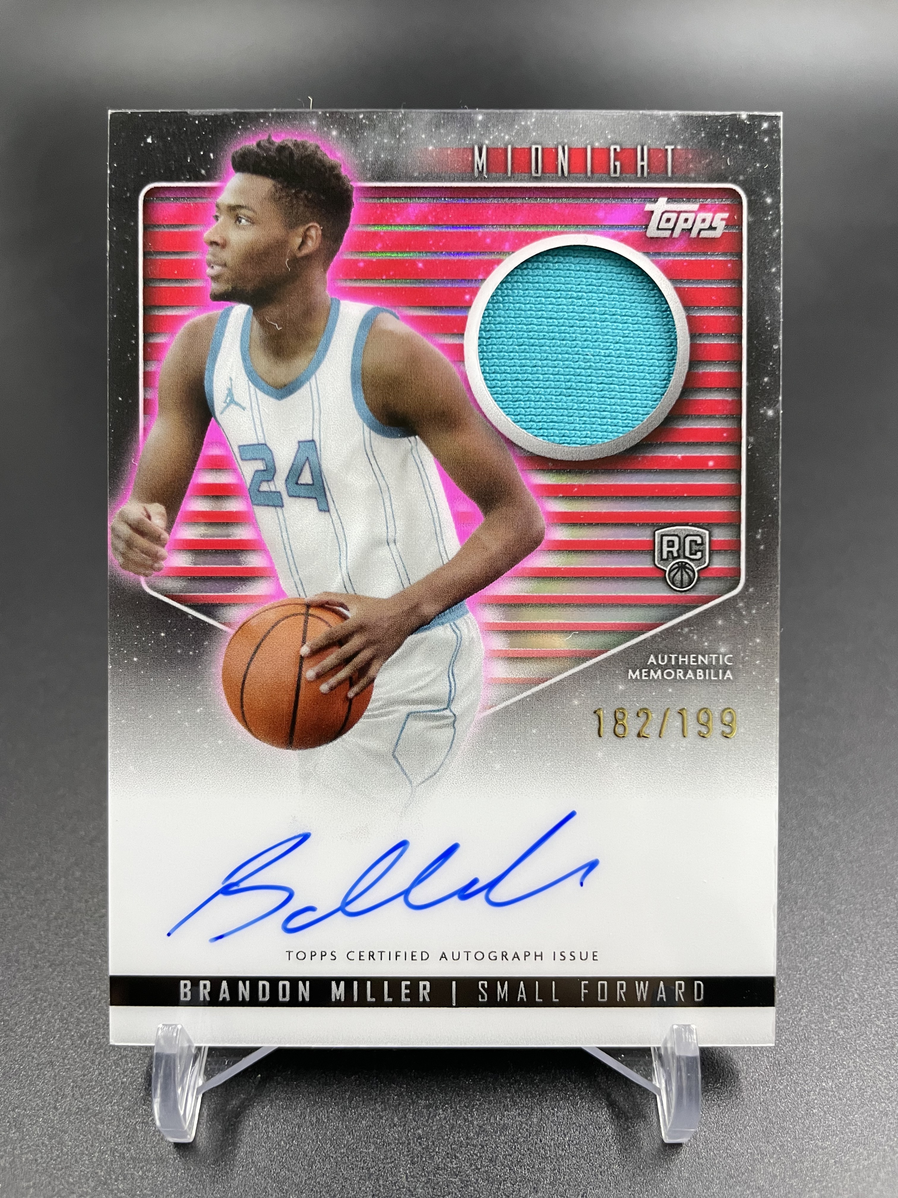 2024 Topps Midnight Brandon Miller RC 37【超级拍卖】午夜 布兰登 米勒 新秀 折射 粉平行 球衣 实物 RJA 签字 卡签 182/199编 卡品如图