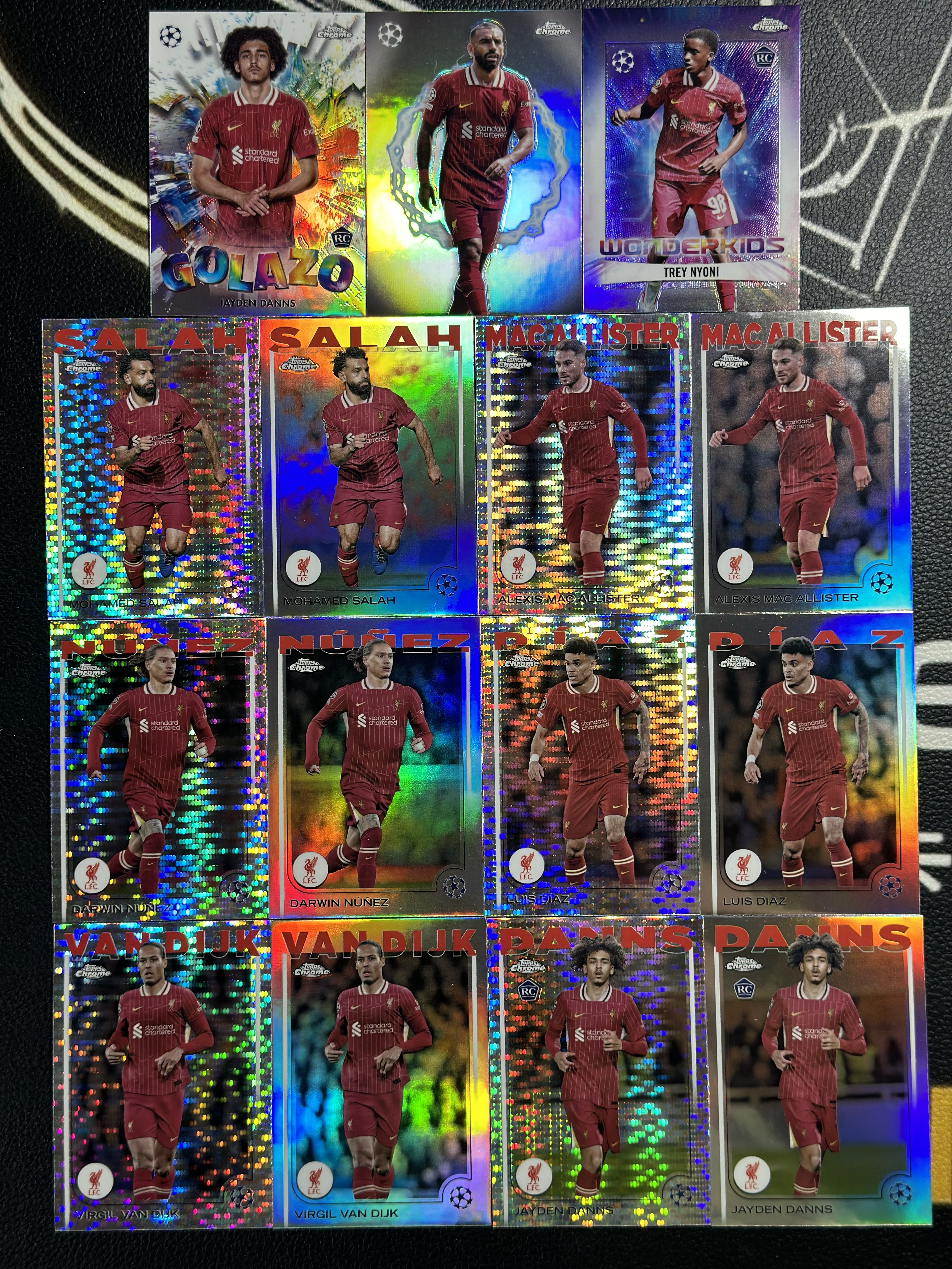 2024-25 Topps Chrome Mohamed Salah 最新欧冠TC 利物浦特卡+银折+脉冲折大队套!萨拉赫 麦卡利斯特 迪亚斯 范戴克 尼奥尼等15张打包 凑套不易卡品如图