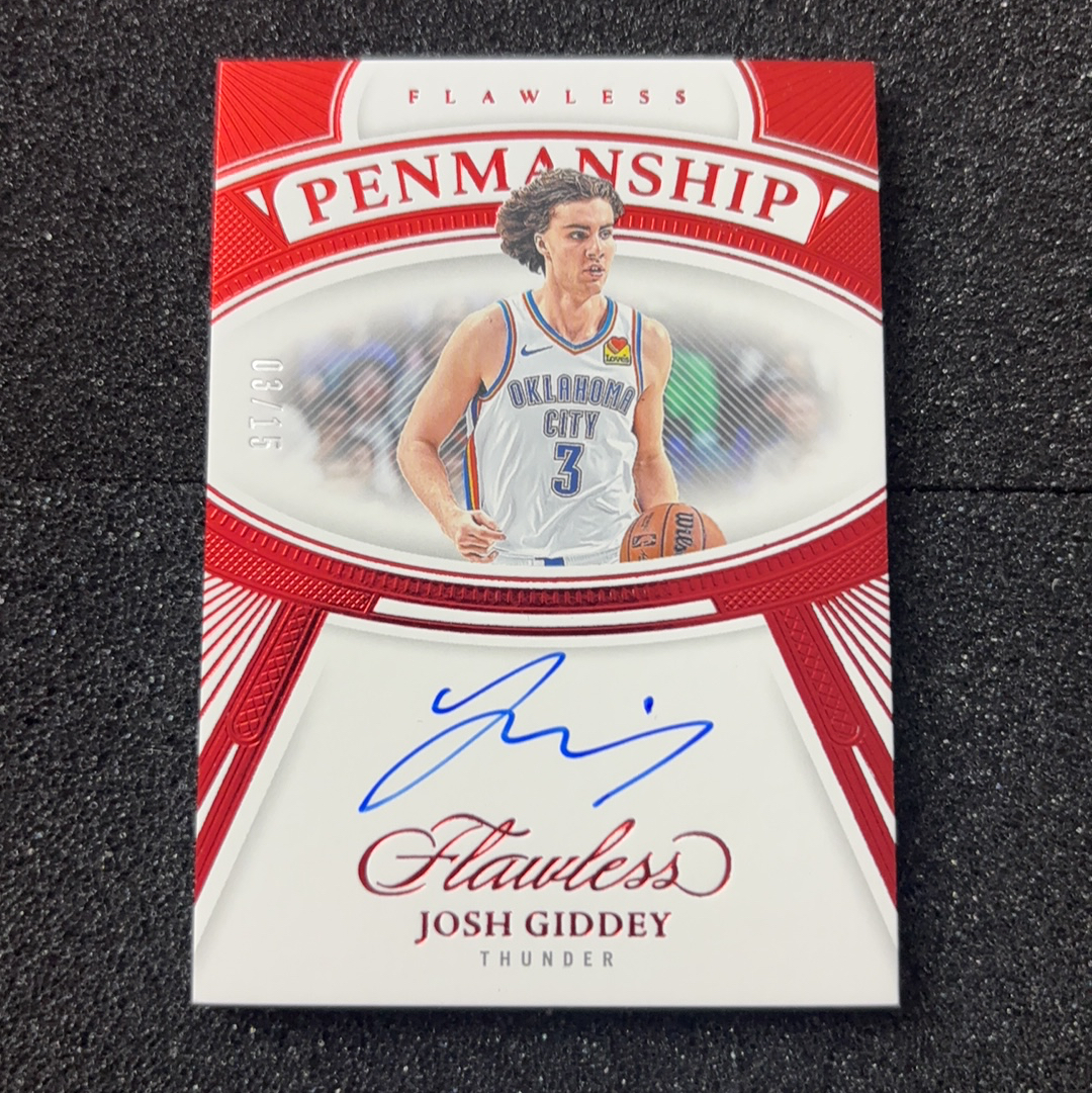 2023-24 Panini Flawless Josh Giddey 【星锐客拍卖】手提 雷霆 约什 吉迪 03/15编 同背号 红折 penmanship 卡签签字 不累计 墨迹如图 卡品如图