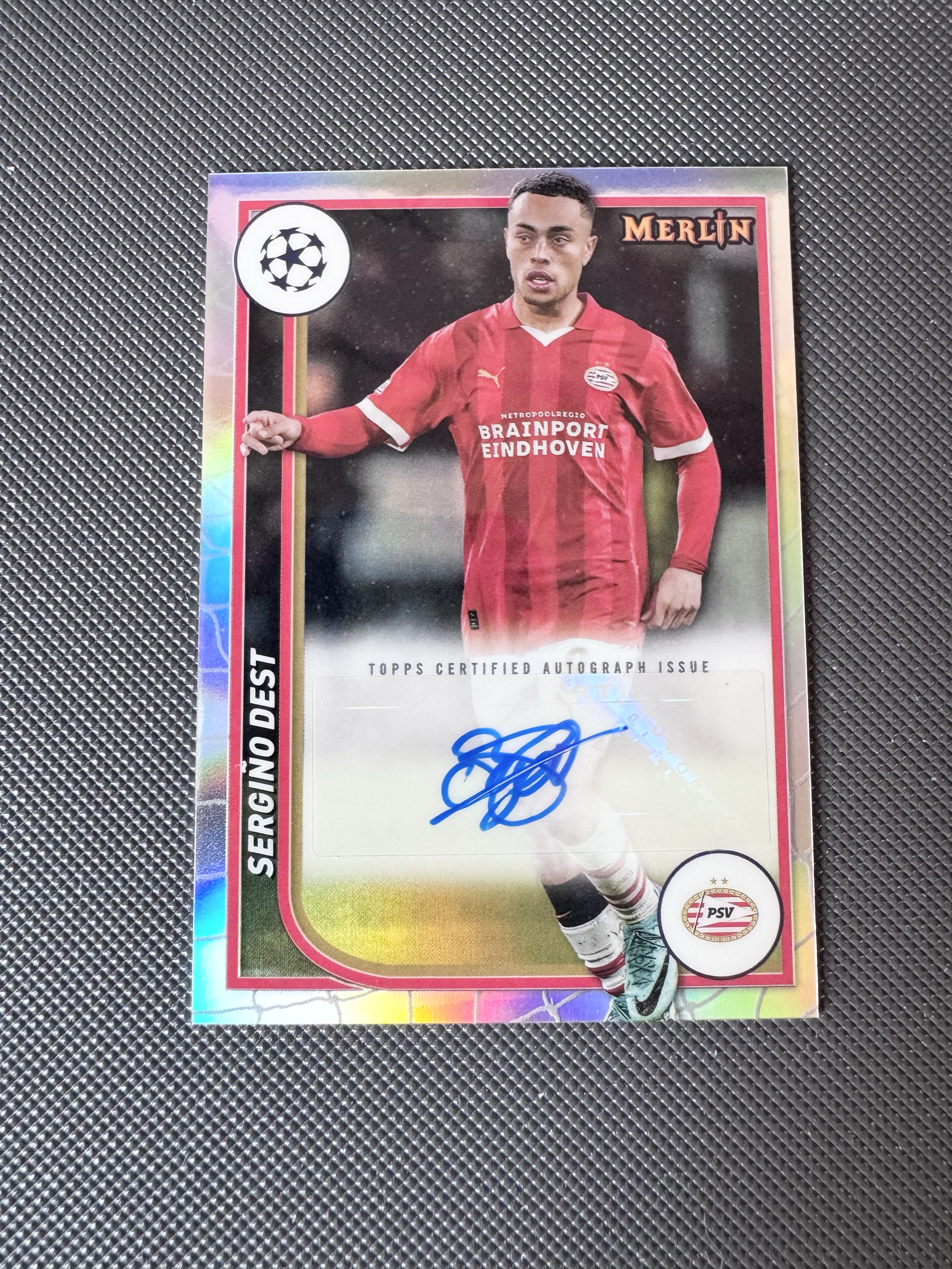 2023-24 Topps Merlin Sergiño Dest 【404NF拍卖】梅林系列 欧冠 埃因霍温 USA 美国 德斯特 银折 签字 凑套必备 卡品如图 -穆昂