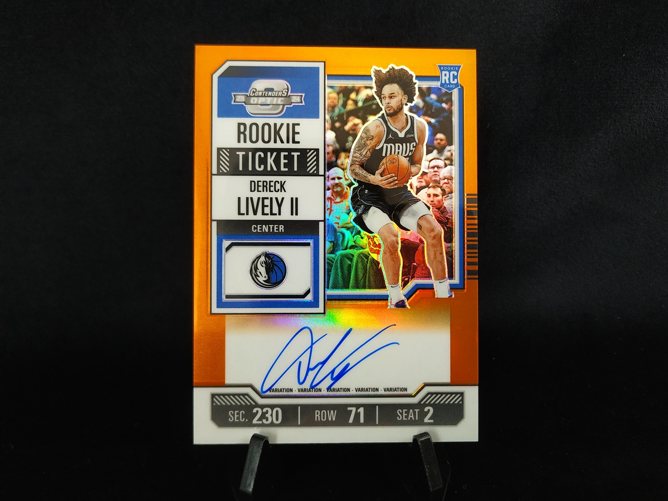 6-7【钢蛋儿拍卖】wzzw 817 Panini 2023-24 球票 Optic 独行侠 RC 新秀 Rookie Ticket 球票 变化版 橙折 卡签 签字 25编 德里克 莱夫利二世 Dereck Lively II 卡品如图