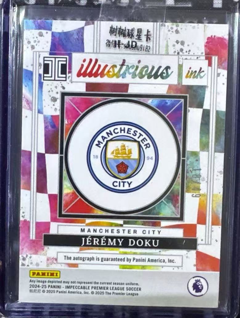 Jeremy Doku 2024-25 panini impeccable Premier League 小真金 多库 曼城 英超 18/49 编 旗帜格子折 卡品如图
