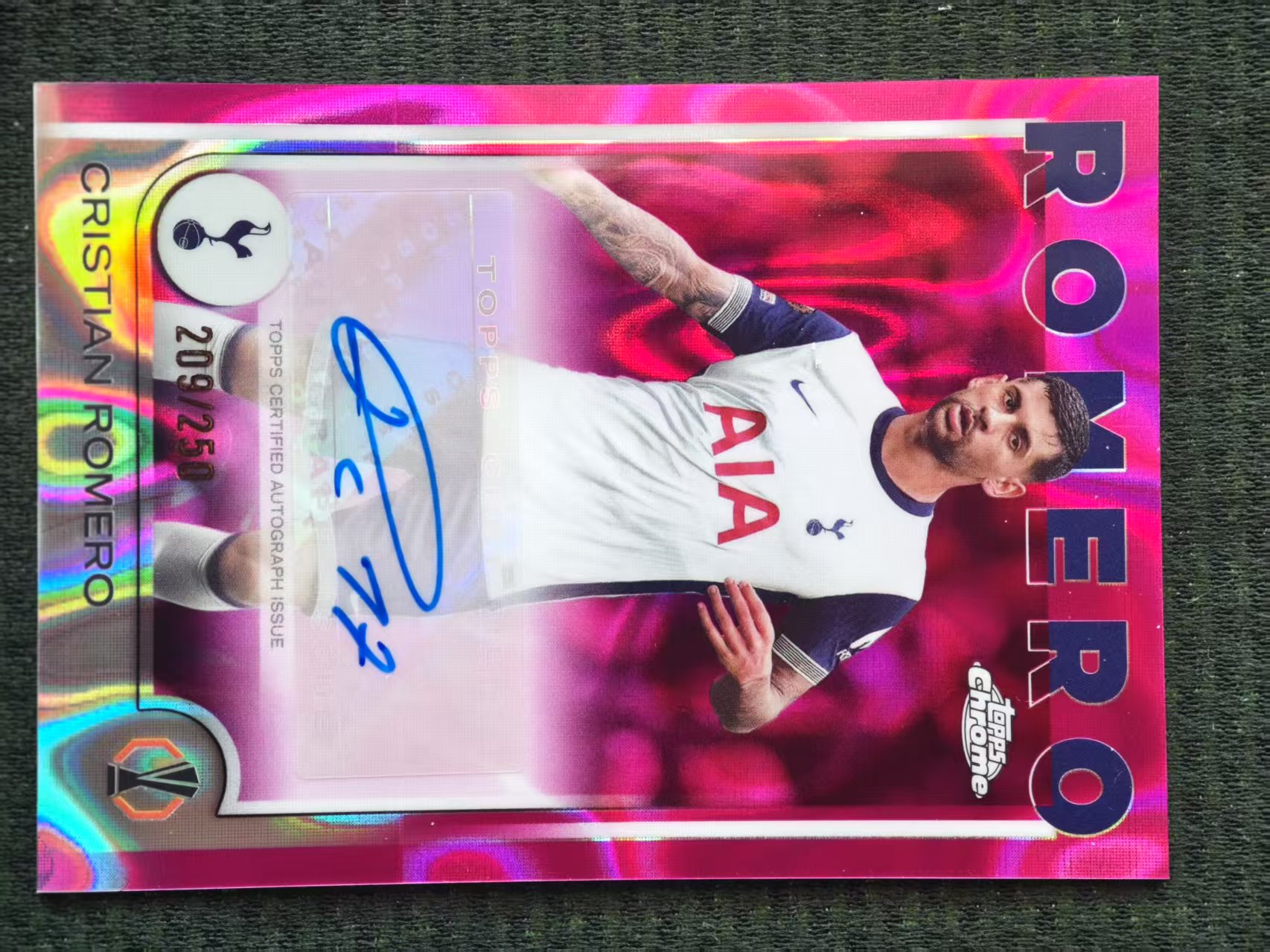 2025 Topps Chrome Cristian Romero 欧冠TC 热刺 克里斯蒂安 罗梅罗 完美签字 209/250编 粉熔岩折 折射 卡品如图【原地起飞卡社】MVP6.4