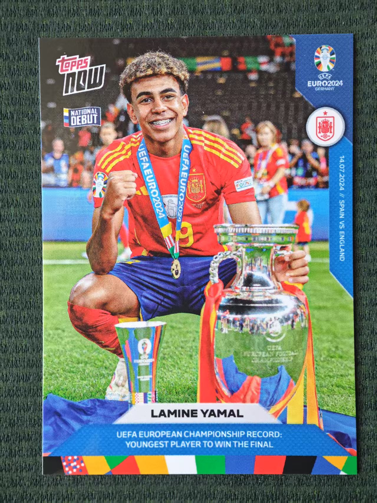 2024 Topps Now Lamine Yamal 欧洲杯 欧洲杯冠军 西班牙 巴萨 巴塞罗那 拉明 亚马尔 奖杯合影 捧杯时刻 特卡 卡品如图【原地起飞卡社】MVP6.4