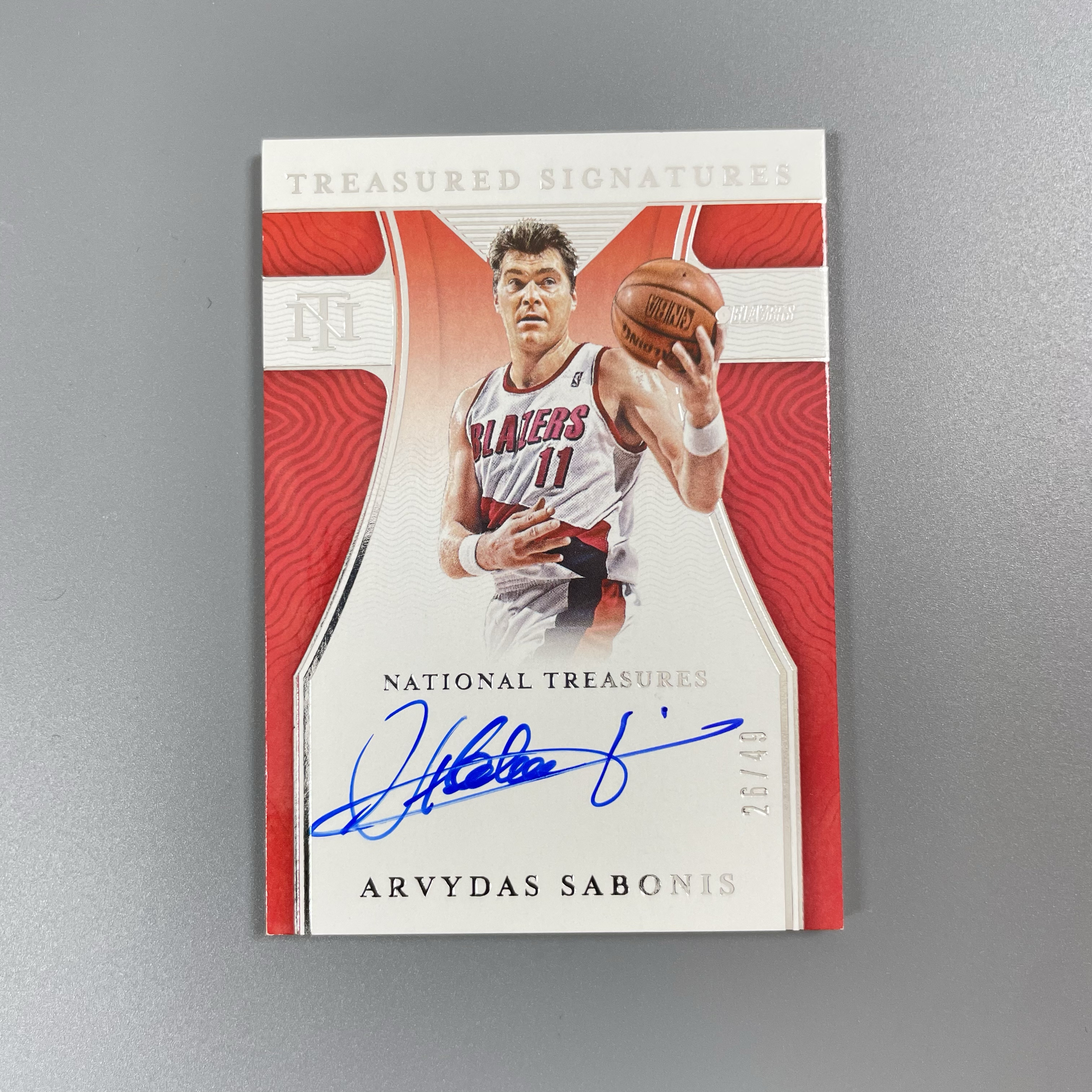 2017-18 Panini National Treasures Arvydas Sabonis 【月火代卖】开拓者 名宿 萨博尼斯 世界屋脊 /49编 签字 卡签 专收必备 CDC