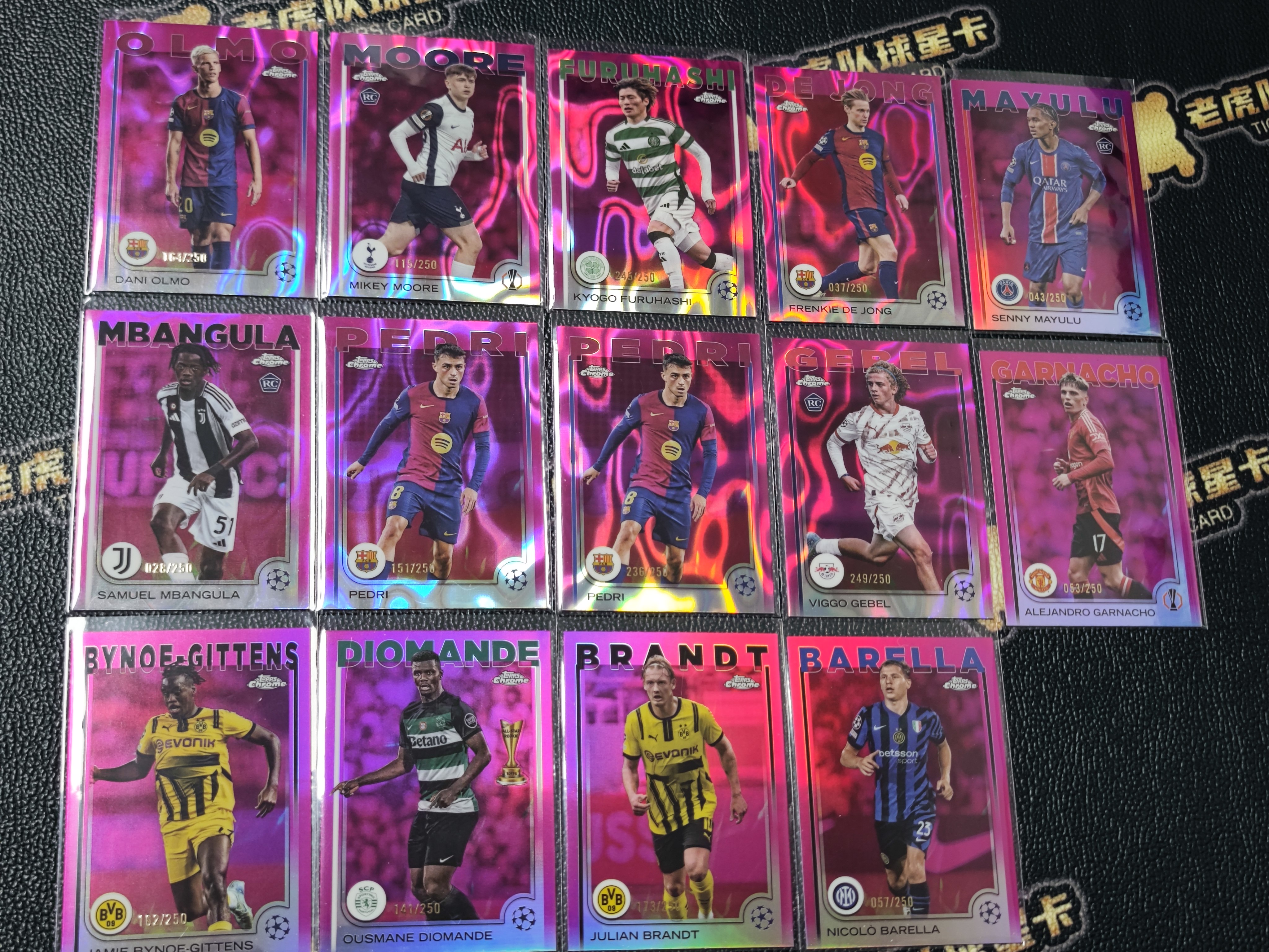 2024-25 【老虎队 海布里】topps chrome Pedri RC 欧冠tc 全部粉折粉熔岩折 带编/250编 14张打包lot 佩德里 马尤卢 巴雷拉 奥尔默 德容 姆班古拉 新秀等 z