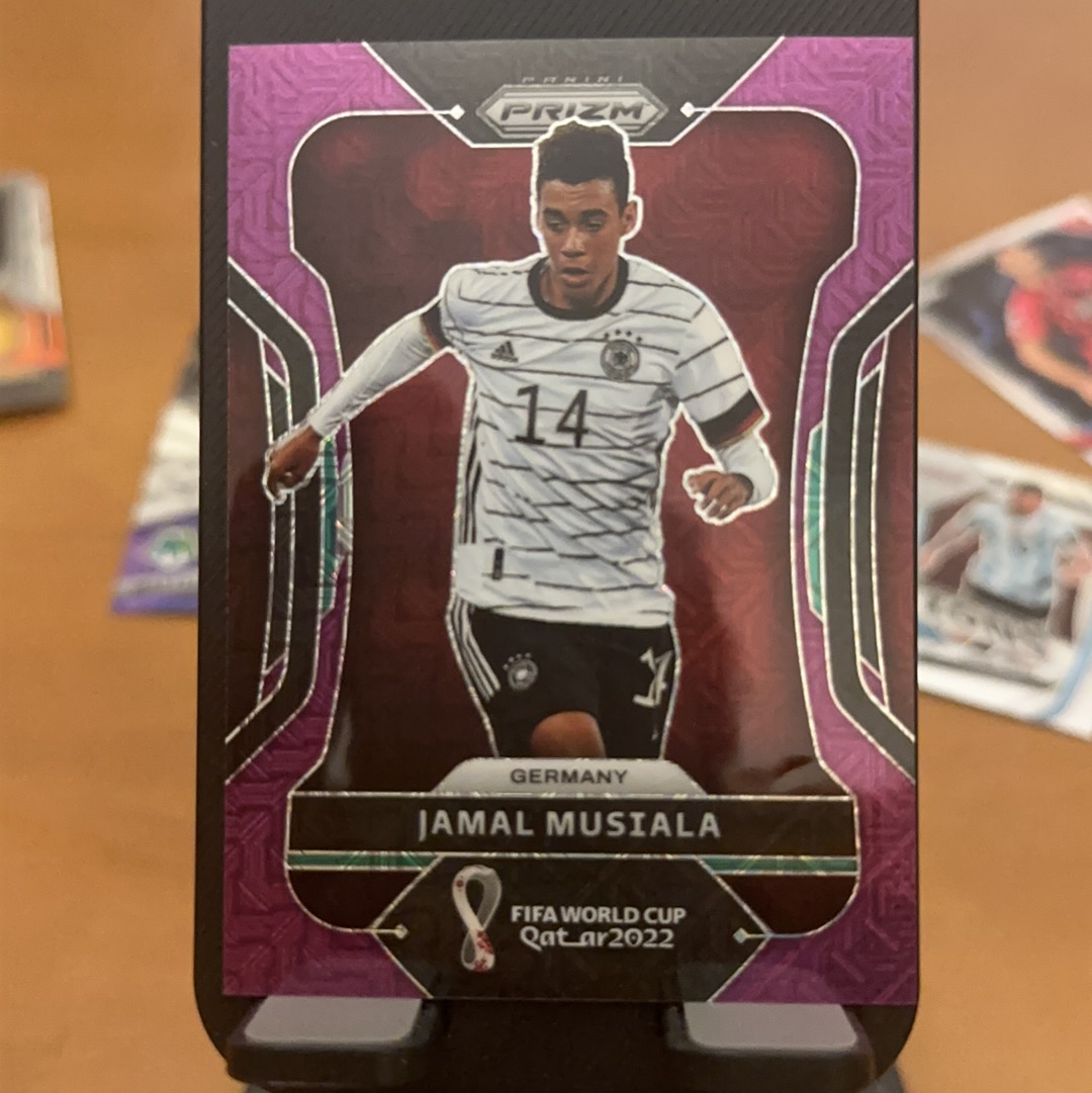 2022 Panini Prizm Jamal Musiala 世界杯 德国 拜仁 贾马尔 穆夏拉 穆西亚拉 26/49编 紫折 天才中场 卡品如图