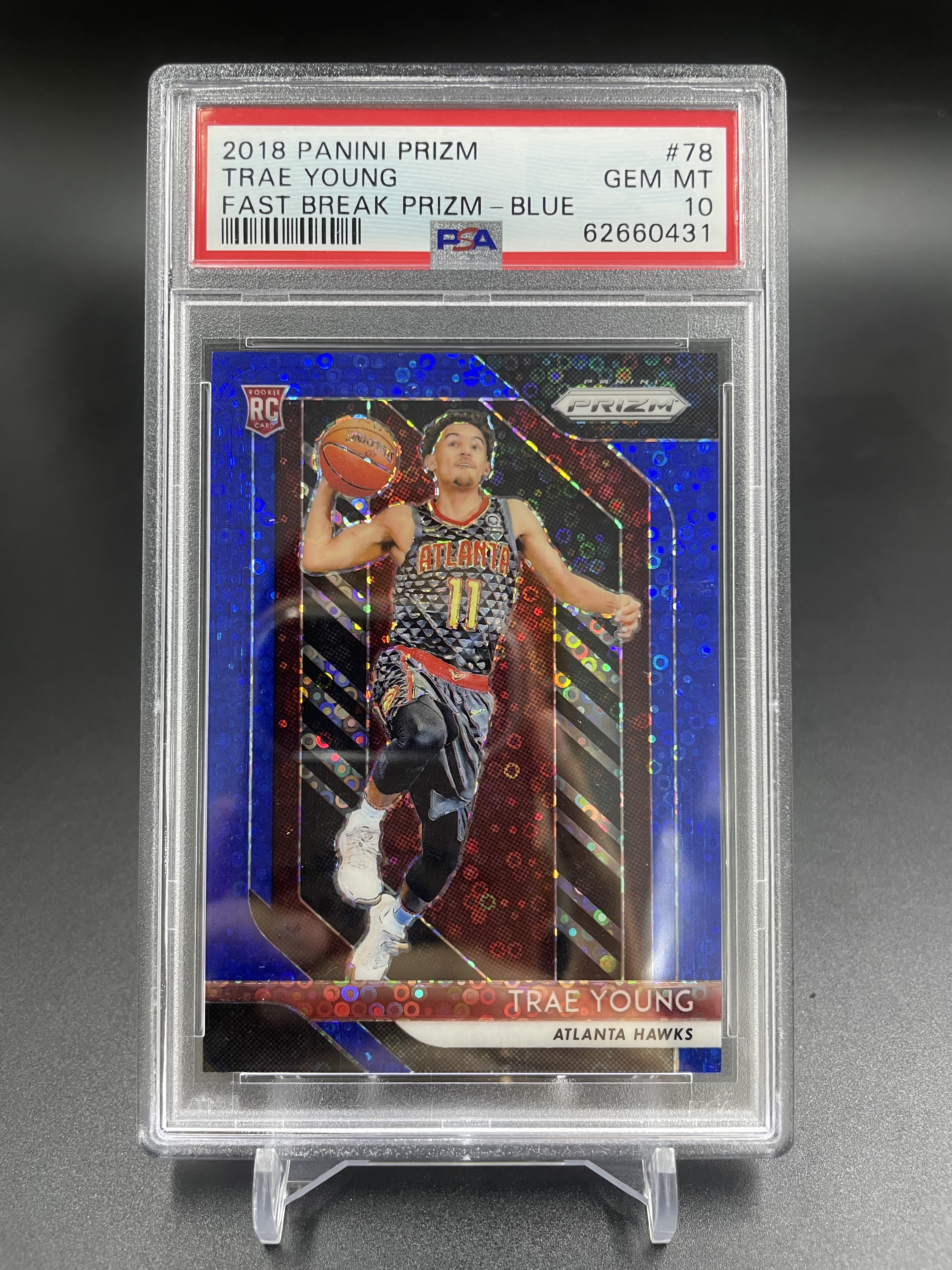 2018-19 Panini Prizm Trae Young RC 10【超级拍卖】PZ 特雷杨 特雷 杨 吹杨 老鹰 新秀 折射 泡泡折 蓝泡泡 027/175编 PSA10 评级卡 有划痕