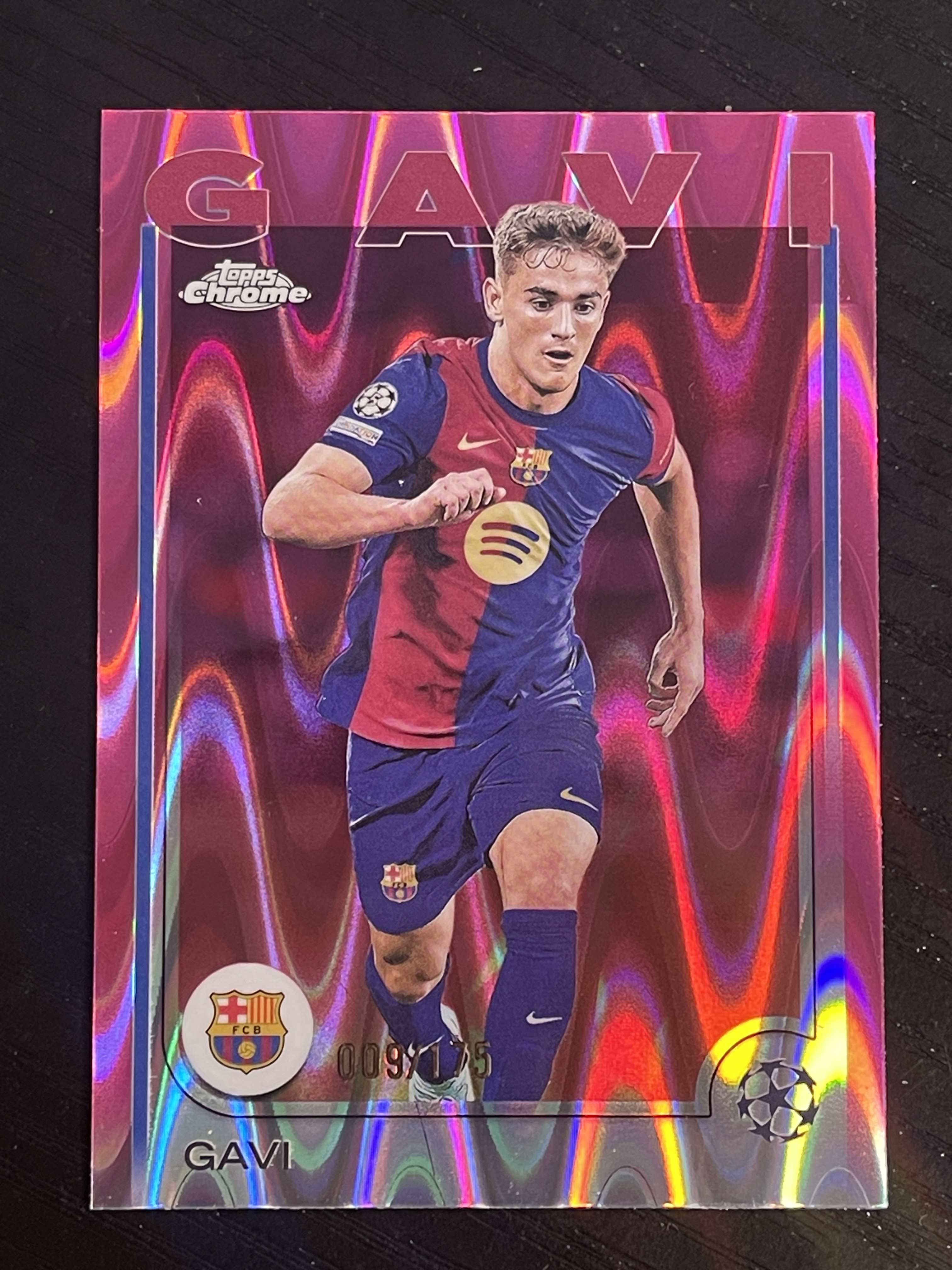 2025 Topps Chrome Gavi 欧战TC 巴萨 巴塞罗那 加维 粉变形虫折 175编 细节如图 收藏必备