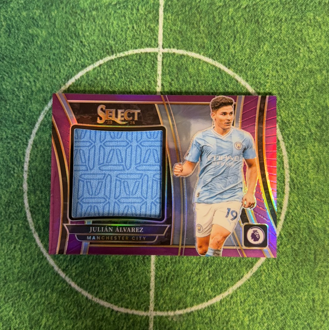 2023-24 Panini Select Julián Álvarez 英超 曼城 小蜘蛛 阿尔瓦雷斯 大窗 球衣物料 切割 21/49编 低编 紫折 皇家马德里 阿根廷 状态火热 细节如图