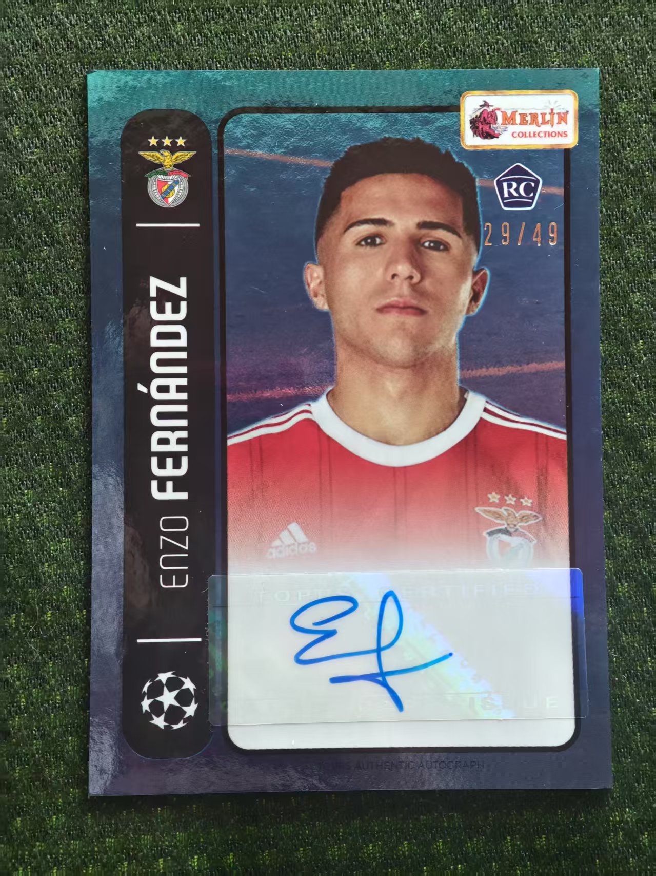 2022 Topps Merlin Enzo Fernández RC 欧冠 梅林 本菲卡 切尔西 RC新秀 恩佐 费尔南德斯 完美签字 29/49编 蓝折 折射 卡如图【原地起飞卡社】jia6.7