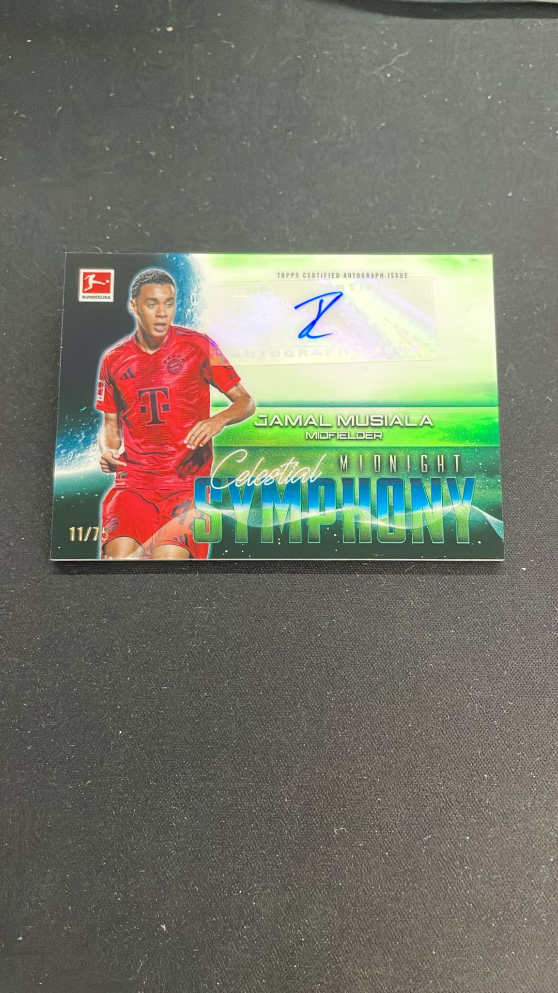 2025 Topps midnight Jamal Musiala 德甲 拜仁慕尼黑 贾马尔穆夏拉 11/75编 Midnight午夜签字 绿平行 贴签 字迹卡品如图 edla