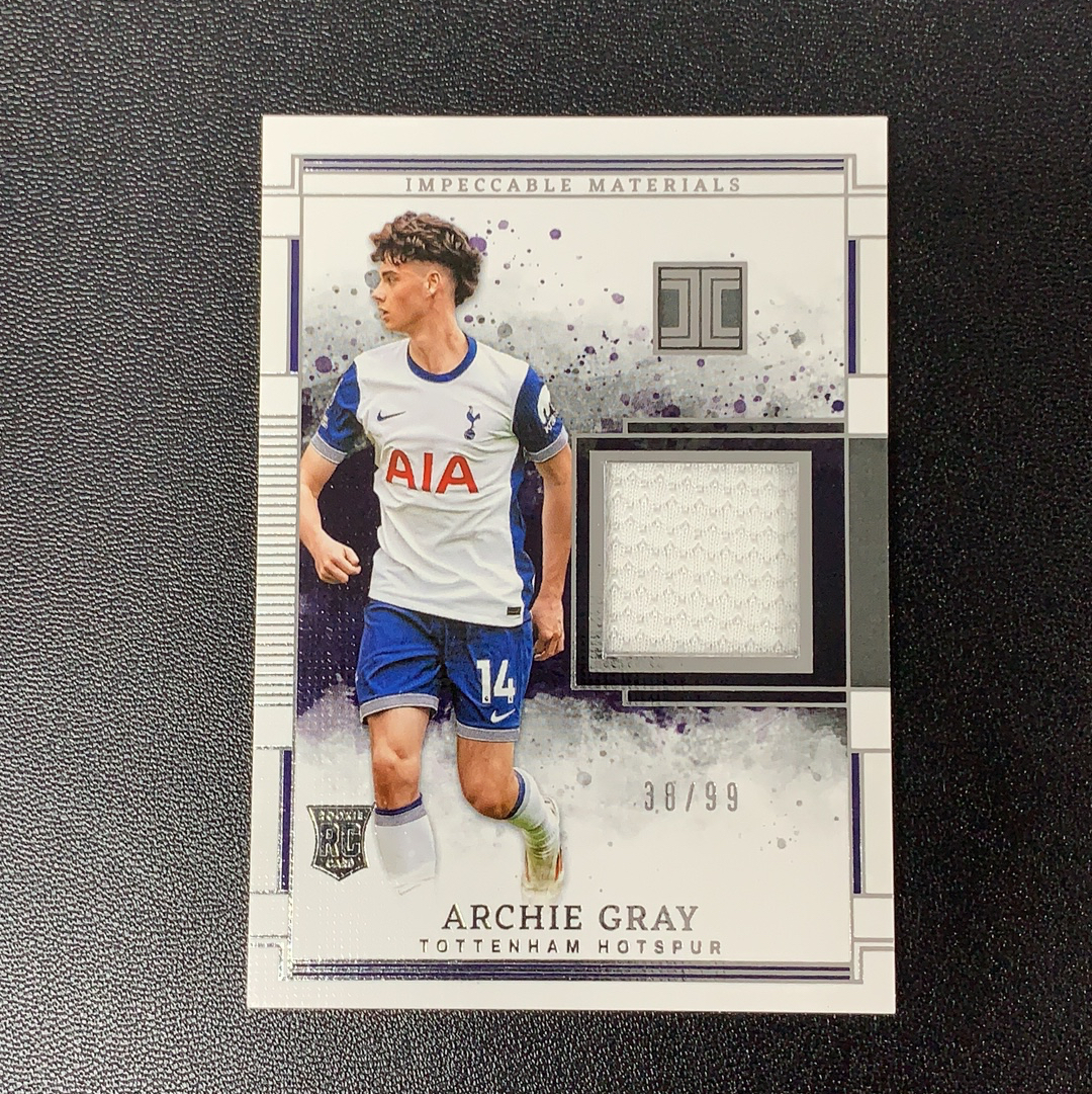【小牛代拍】 2024-25 Panini Impeccable Archie Gray 英超小真金 阿奇 格雷 热刺 38/99编 单窗球衣物料 收藏必备 卡品如图(一哥)