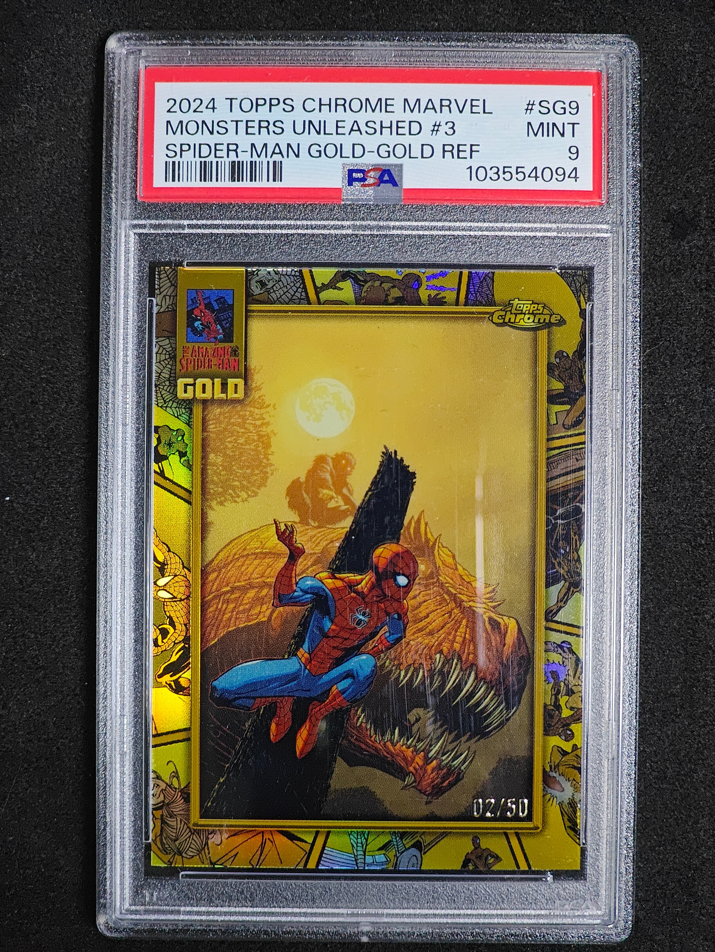 【夜曲拍卖】2024 Topps Chrome Marvel 漫威 Spider Man 蜘蛛侠 2/50编 蜘蛛侠Gold特卡 大比例 ssp PSA9 评级 不累计 锐哥68