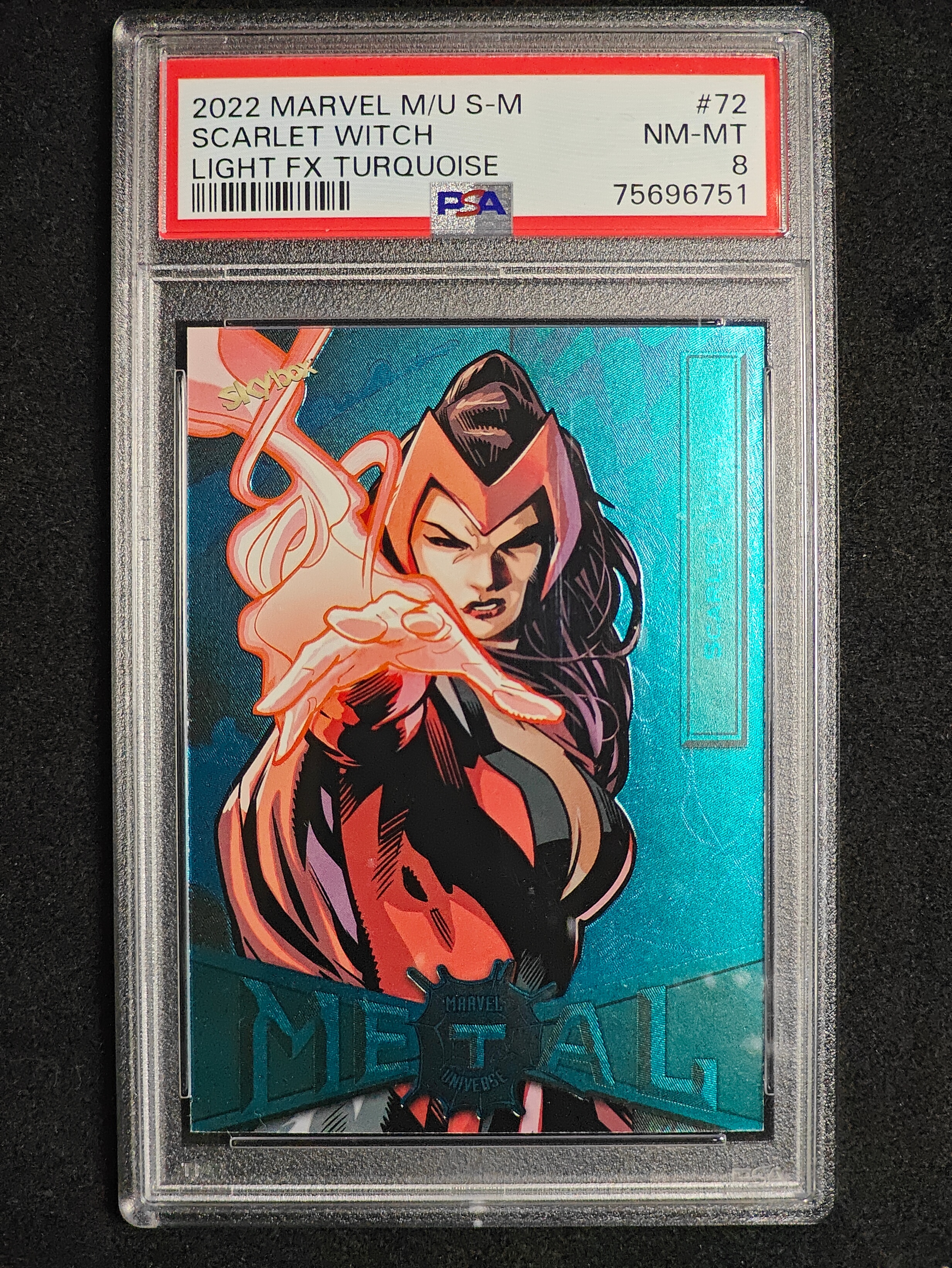 【夜曲拍卖】2022 Skybox Marvel metal 漫威 Scarlet Witch 绯红女巫 50编 浅翠蓝折 PSA8 评级 不累计 锐哥68