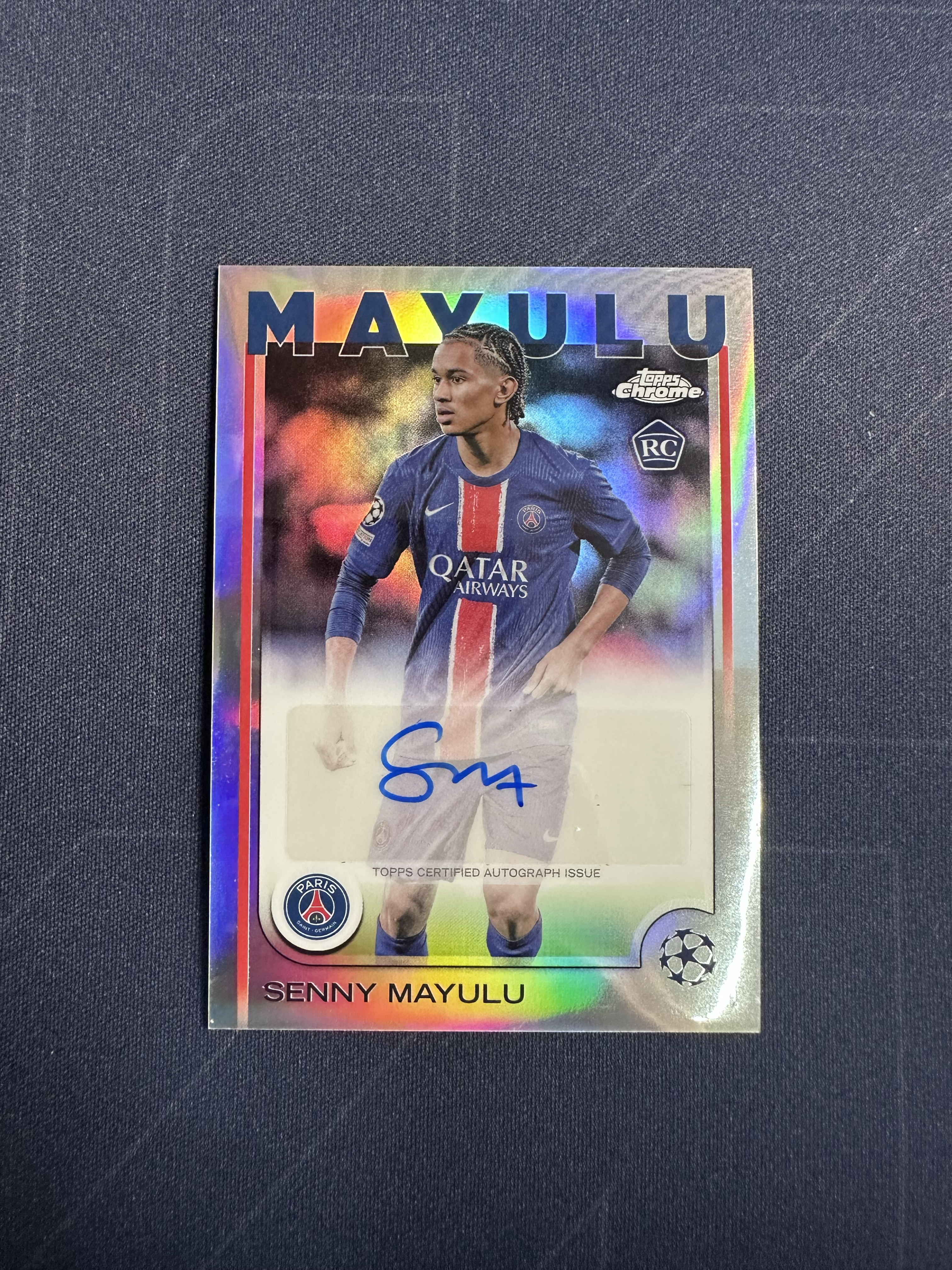 2024-25 Topps Chrome Senny Mayulu RC cu代卖林 欧战Tc 新秀 巴黎圣日耳曼 塞尼 马尤鲁 法国 签字 base签 银折 折射 墨迹卡品如图
