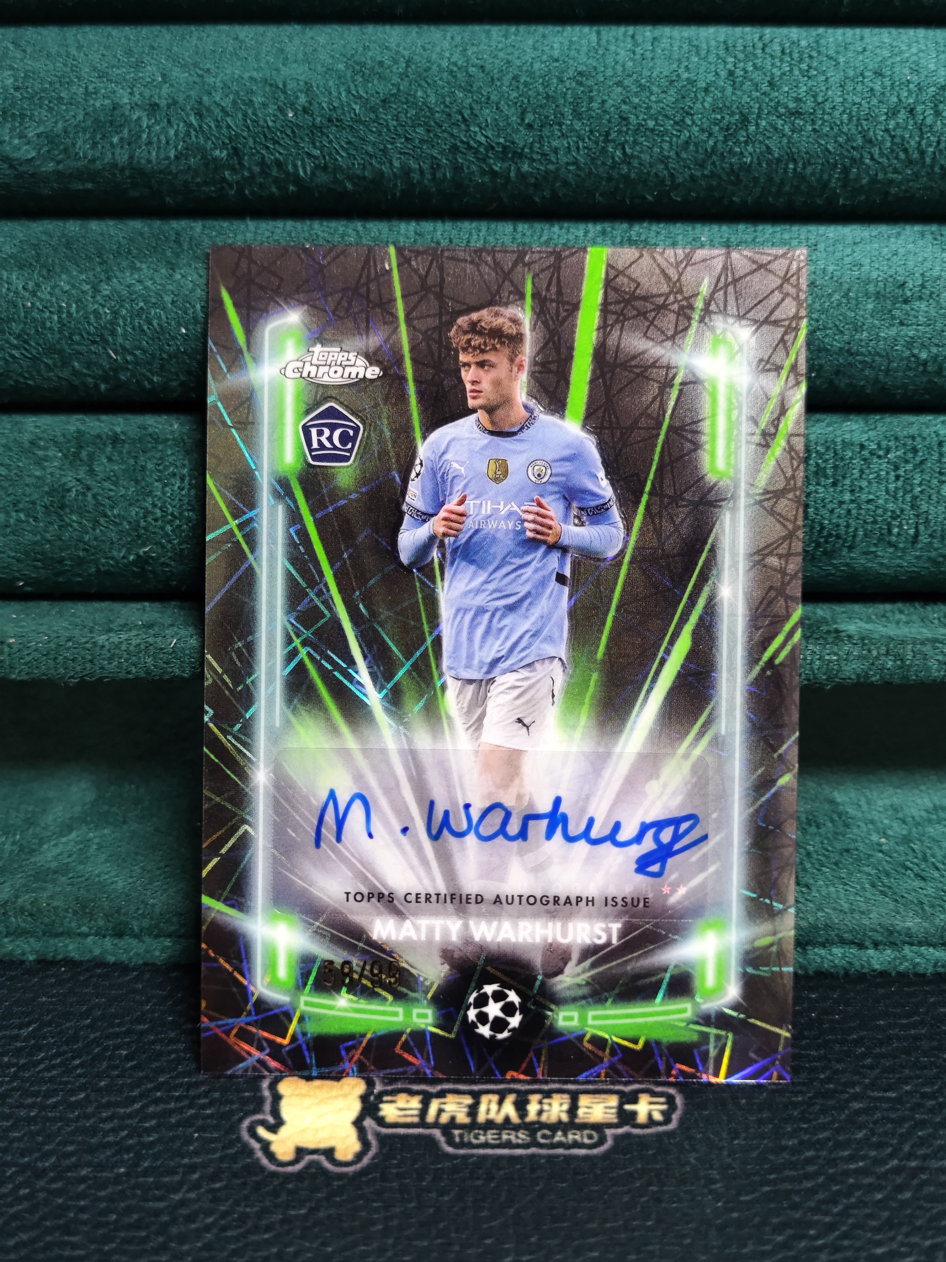 2024-25 【老虎队 海布里】topps chrome matty warhurst RC 欧冠tc 沃赫斯特 签字 绿镭射折 59/99编 曼城 新秀 边角微瑕 z