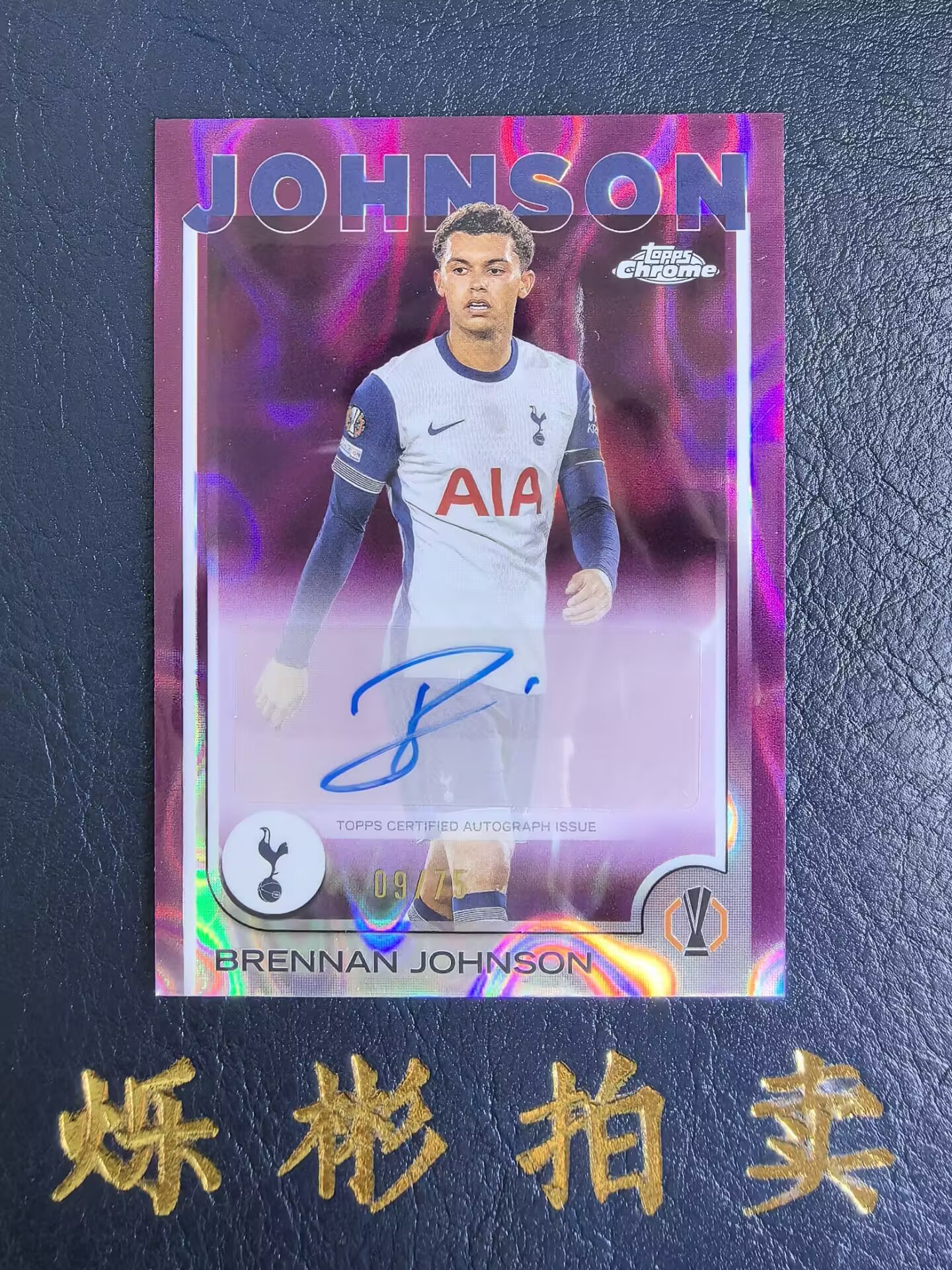 2025 Topps Chrome Brennan Johnson 【烁彬拍卖 0手续费】欧冠 热刺 布伦南 约翰逊 09/75编 签字 紫熔岩折 限量 折射 紫折 英超 AND0615