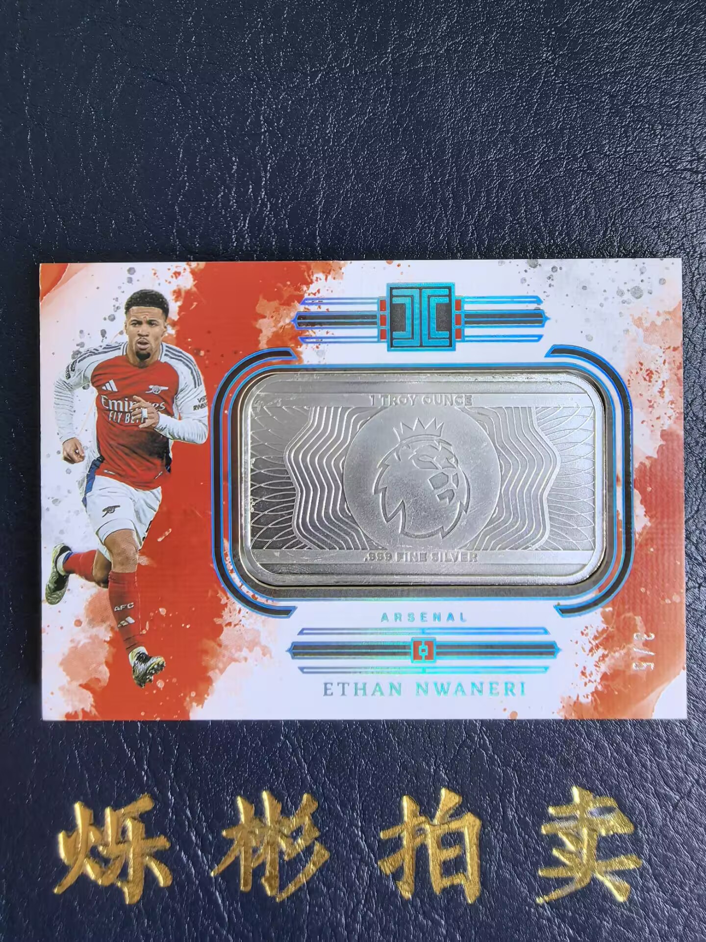 2024-25 Panini Impeccable Ethan Nwaneri 【烁彬拍卖 0手续费】英超 小真金 阿森纳 恩瓦内里 3/5编 银块 银砖 湖水蓝 英超LOGO 欧冠AND0615