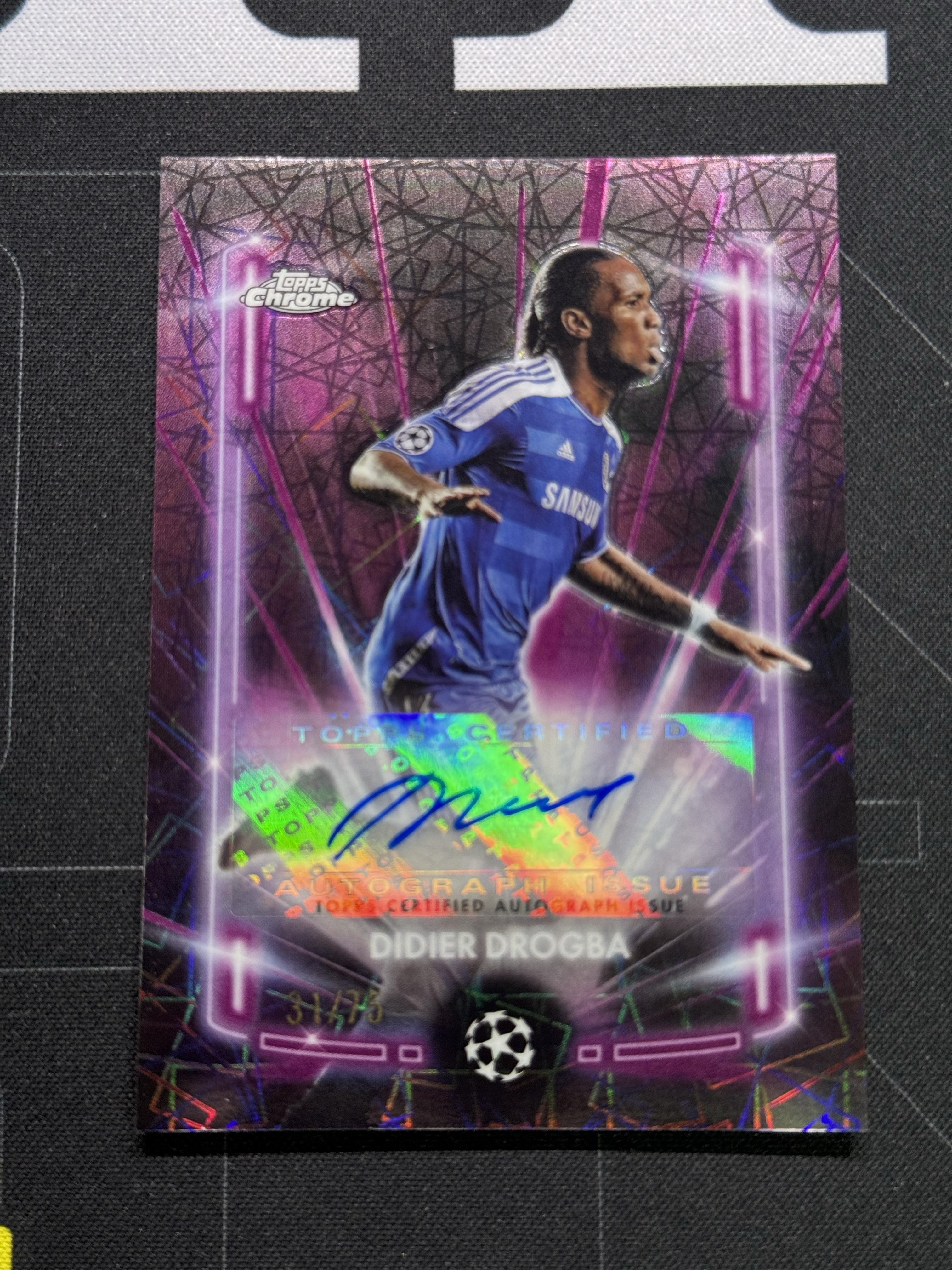 2024-25 Topps Chrome Didier Drogba Chrome 切尔西 德罗巴 魔兽 粉镭射折 紫镭射 签字 贴签 墨迹湛蓝 34/75编 科特迪瓦 加拉萨塔雷 卡品如图
