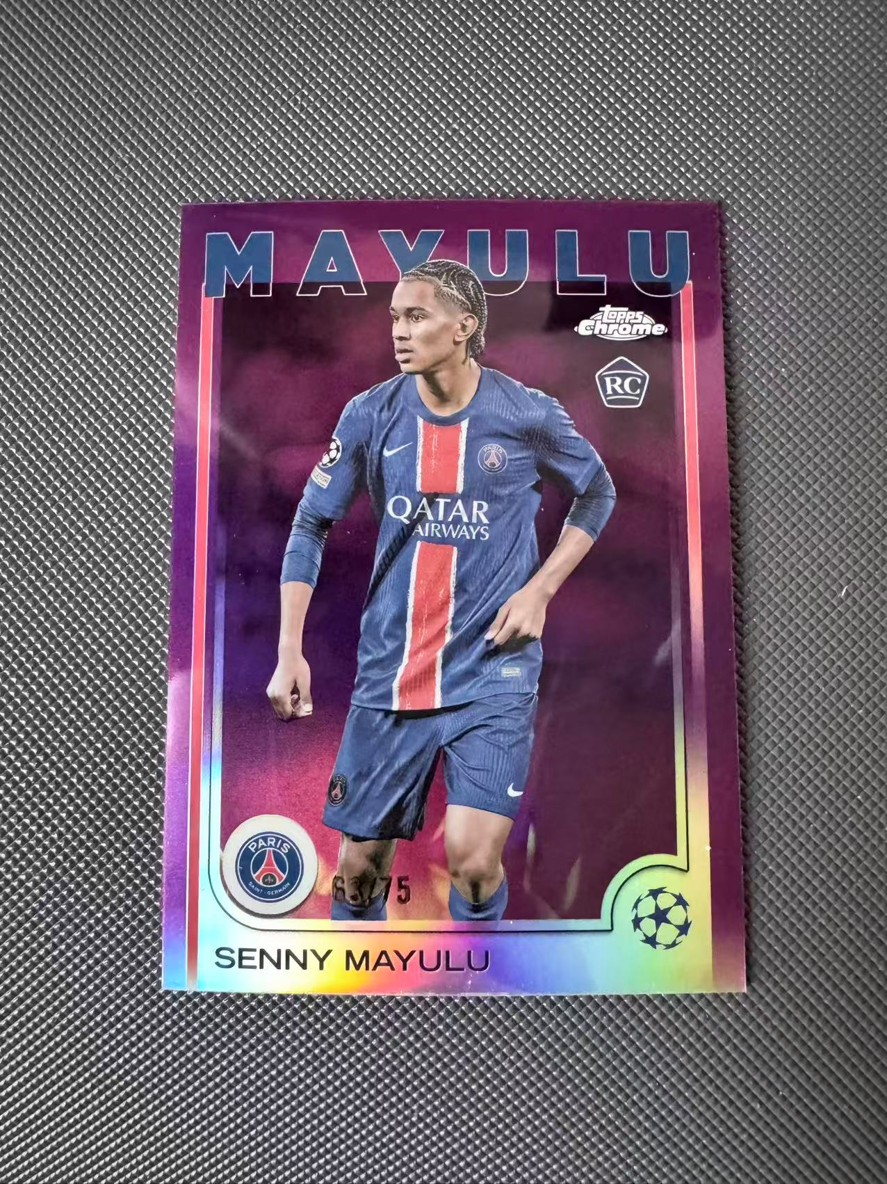 2024-25 Topps Chrome Mayulu RC 【404NF拍卖】TC系列 欧冠 巴黎圣日耳曼 欧冠决赛进球 法国 新秀 马尤卢 63/75编 品红熔岩折 凑套必备 卡品如图 -a总