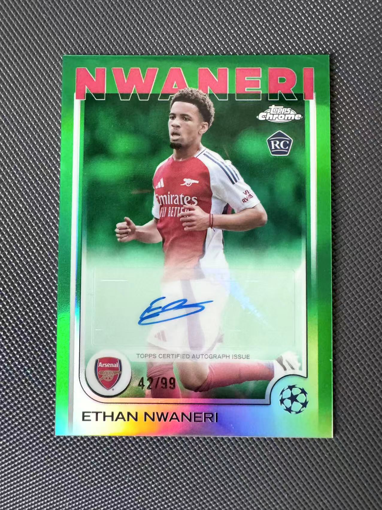 2024-25 Topps Chrome Nwaneri RC 【404NF拍卖】TC系列 欧冠 阿森纳 英格兰 大热新秀 恩瓦内利 恩瓦内里 42/99编 绿折 签字 完美签 卡品如图 -a总