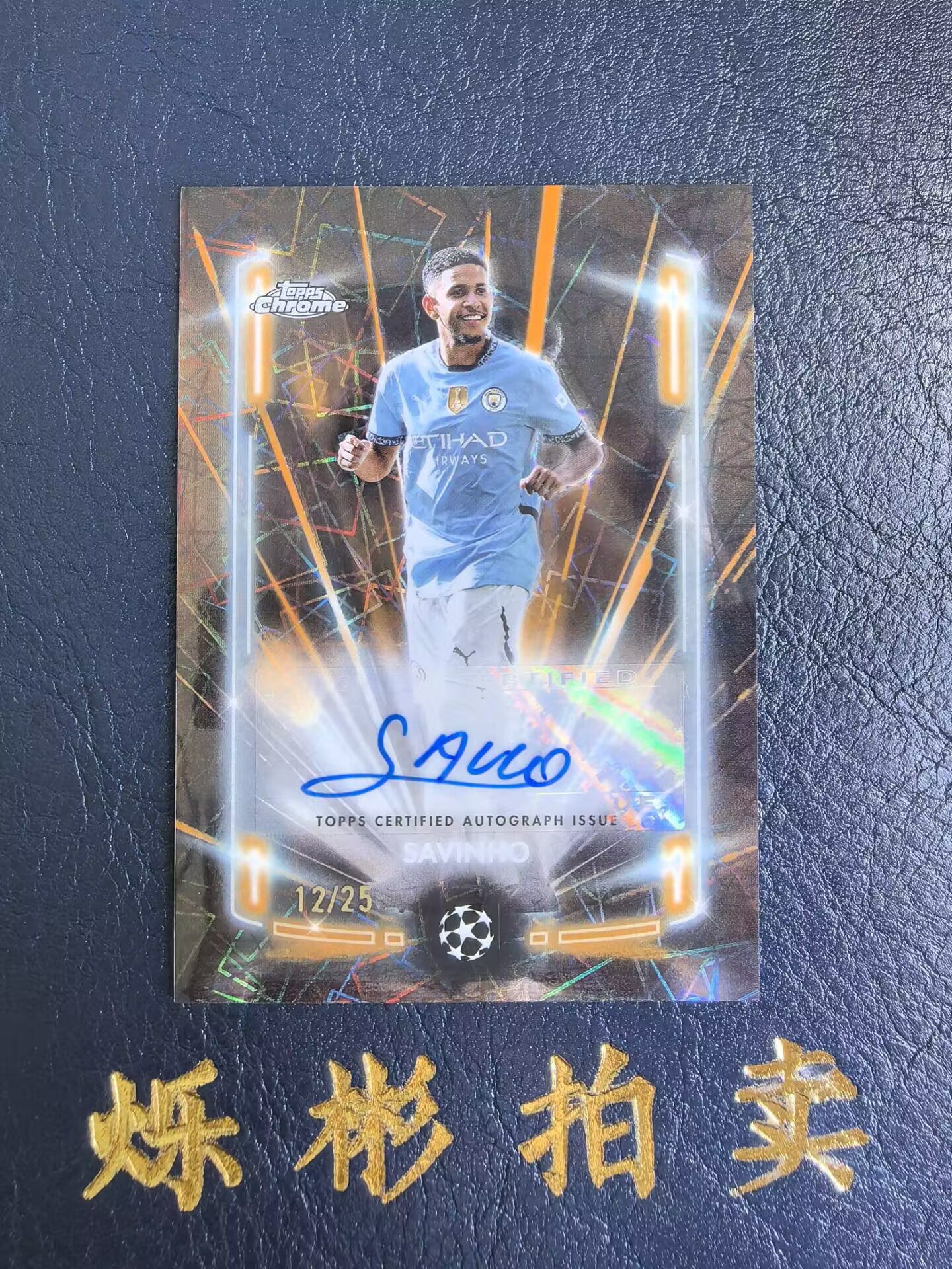 2025 Topps Chrome Savinho 【烁彬拍卖 0手续费】欧冠 曼城 萨维尼奥 12/25编 签字 橙镭射折 限量 折射 低编 英超 YOU0615