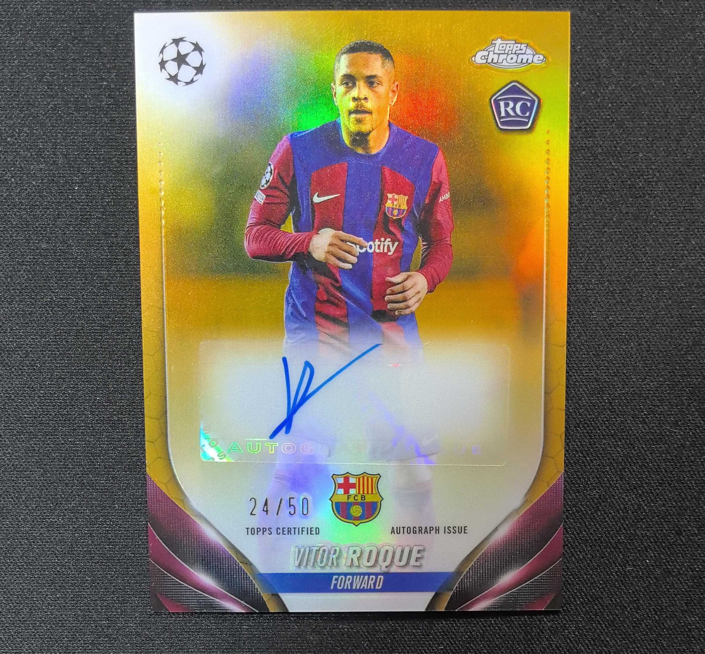 2024 TOPPS 欧冠TC系列 巴塞罗那 RC新秀 ROQUE/罗克 24/50编 金折 签字 经典选图 稀有卡种 卡品如图 出厂瑕疵 拍前请仔细阅读拍前必读