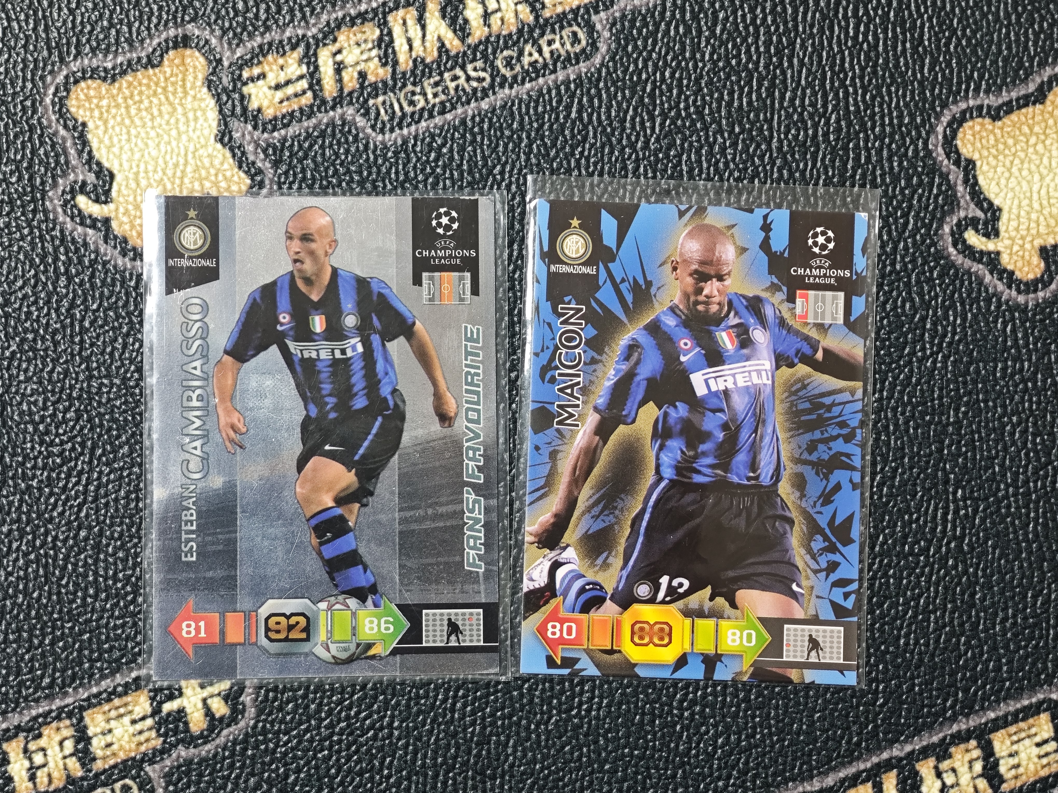 2010-11 【老虎队 蓝黑】panini XL ADRENRLYN Esteban Cambiasso 欧冠游戏版 坎比亚索 maicon麦孔 老卡特卡折射 2张打包lot 国际米兰 三冠王