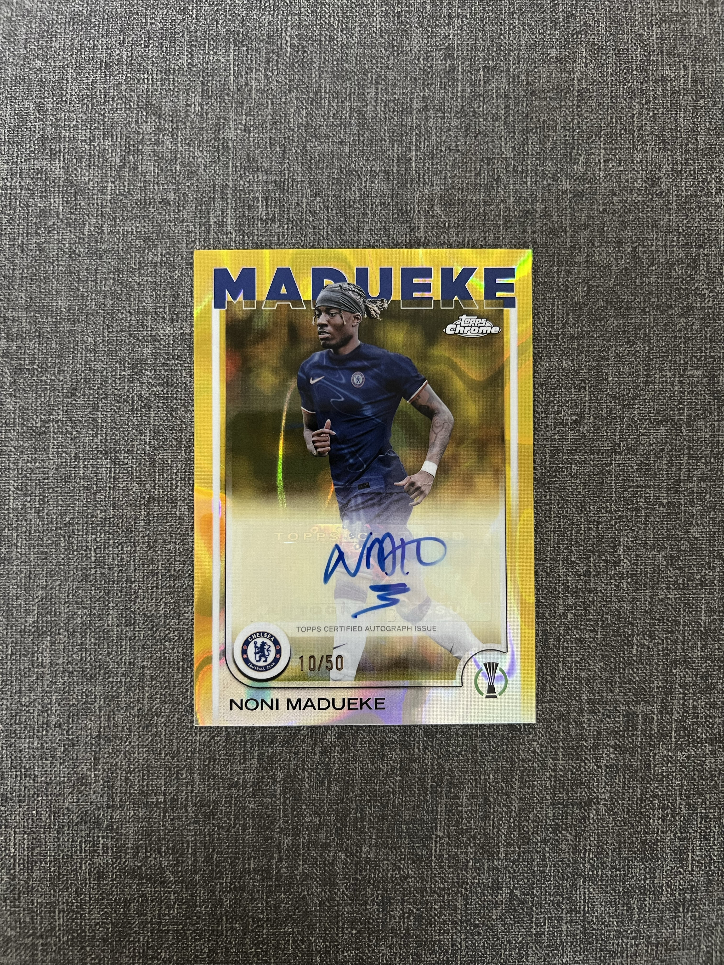 2024-25 Topps Chrome Noni Madueke 欧战 chrome 切尔西 马杜埃凯 金熔岩折射 签字 贴签 限量/50 品相如图
